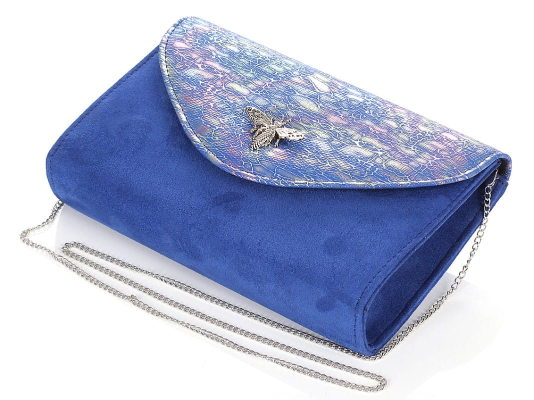 SALVARE Duża torebka kopertówka zamsz Kobalt