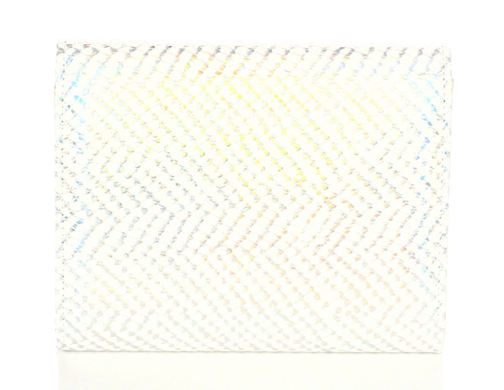 ✅ Wykonana z białej skóry ekologicznej z wytłoczoną fakturą skóry węża, nakrapiana pięknym srebrnym wzorem
