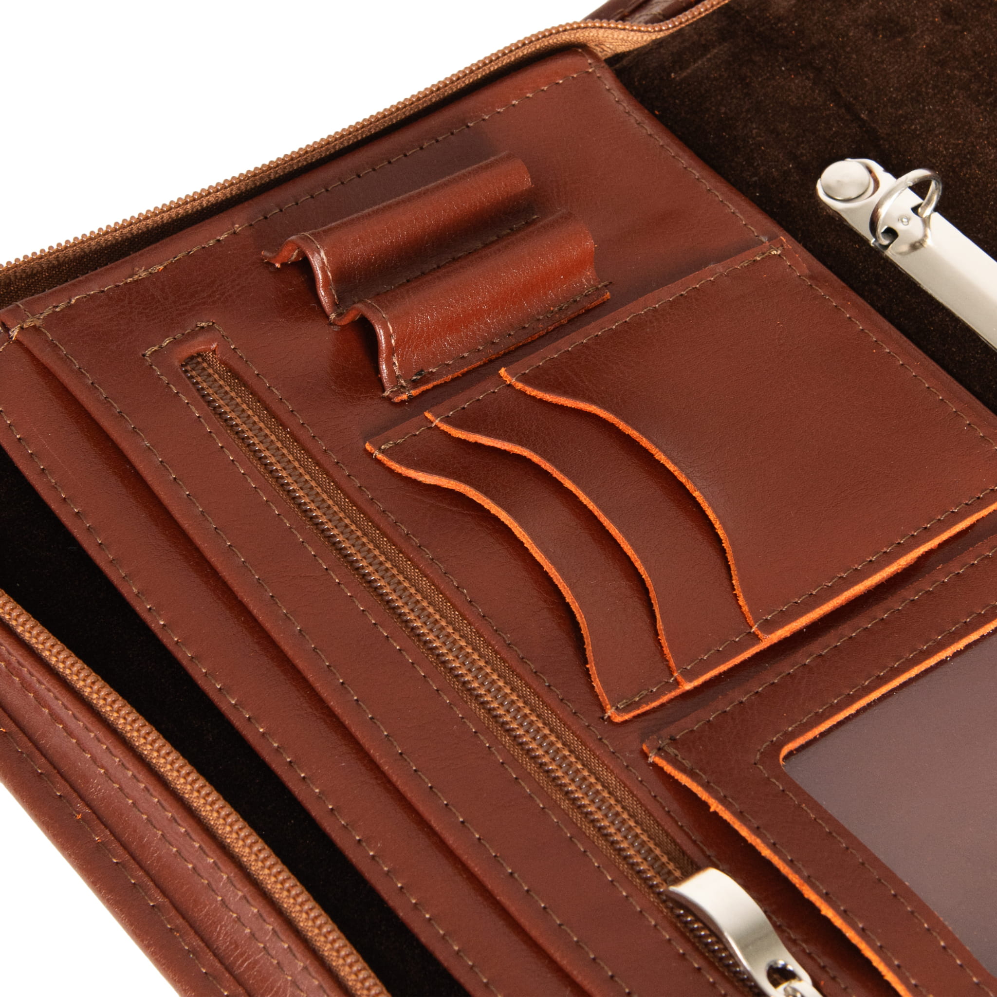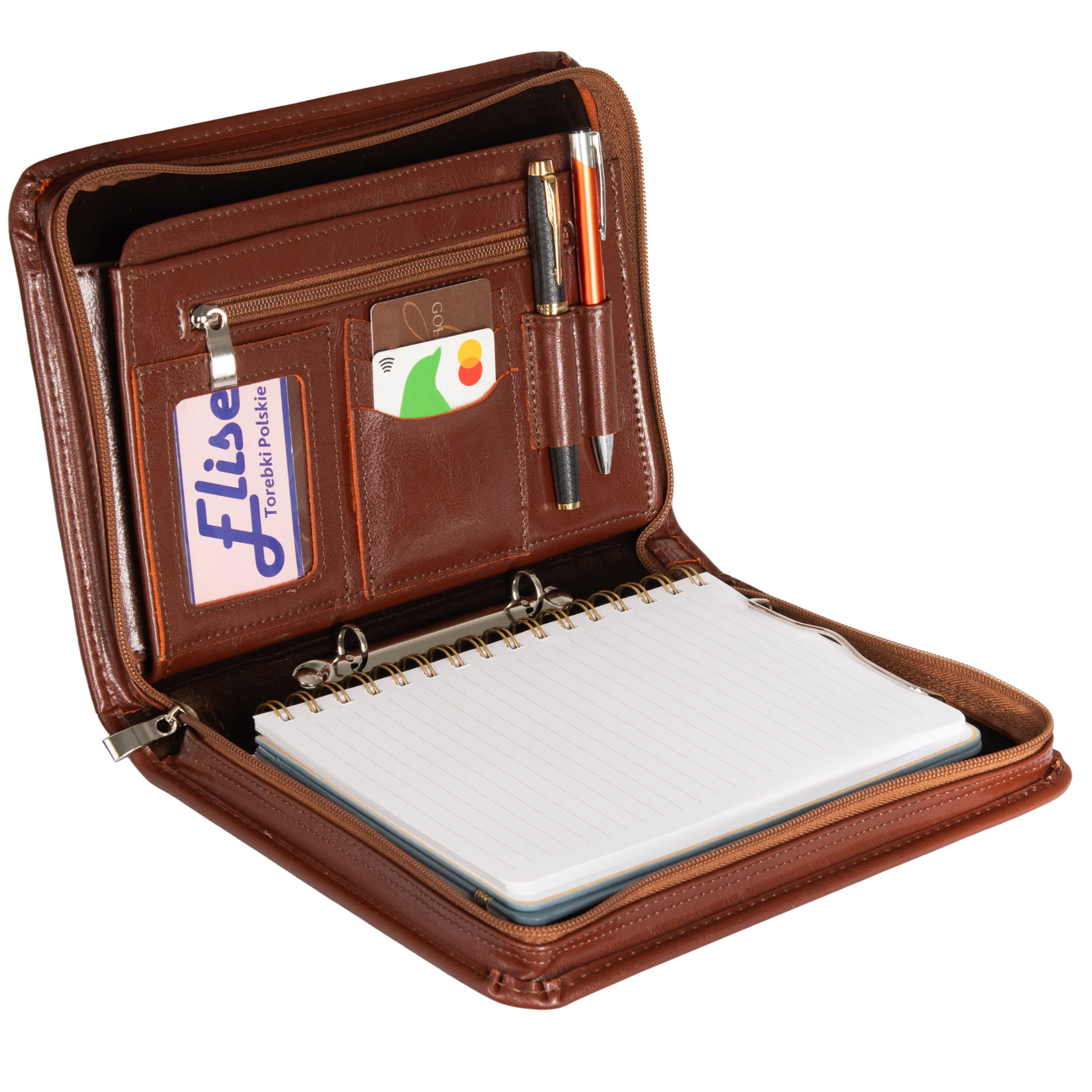 Mimo kompaktowych wymiarów, ten skórzany neseser A5 zaskakuje swoją pojemnością i przemyślanym wnętrzem. Został zaprojektowany tak, abyś wszystkie najważniejsze dokumenty i akcesoria miał zawsze pod ręką. Wewnątrz znajdziesz: