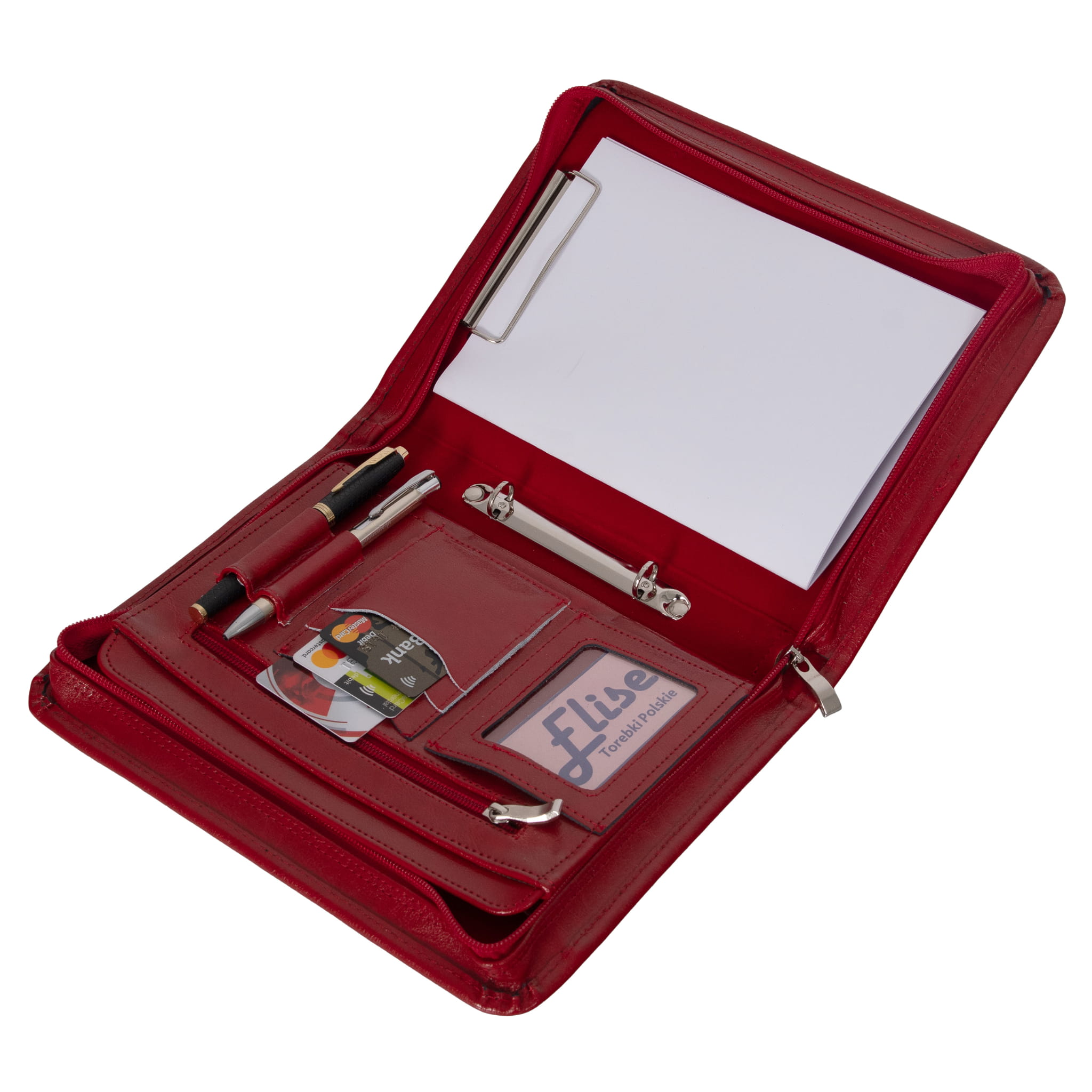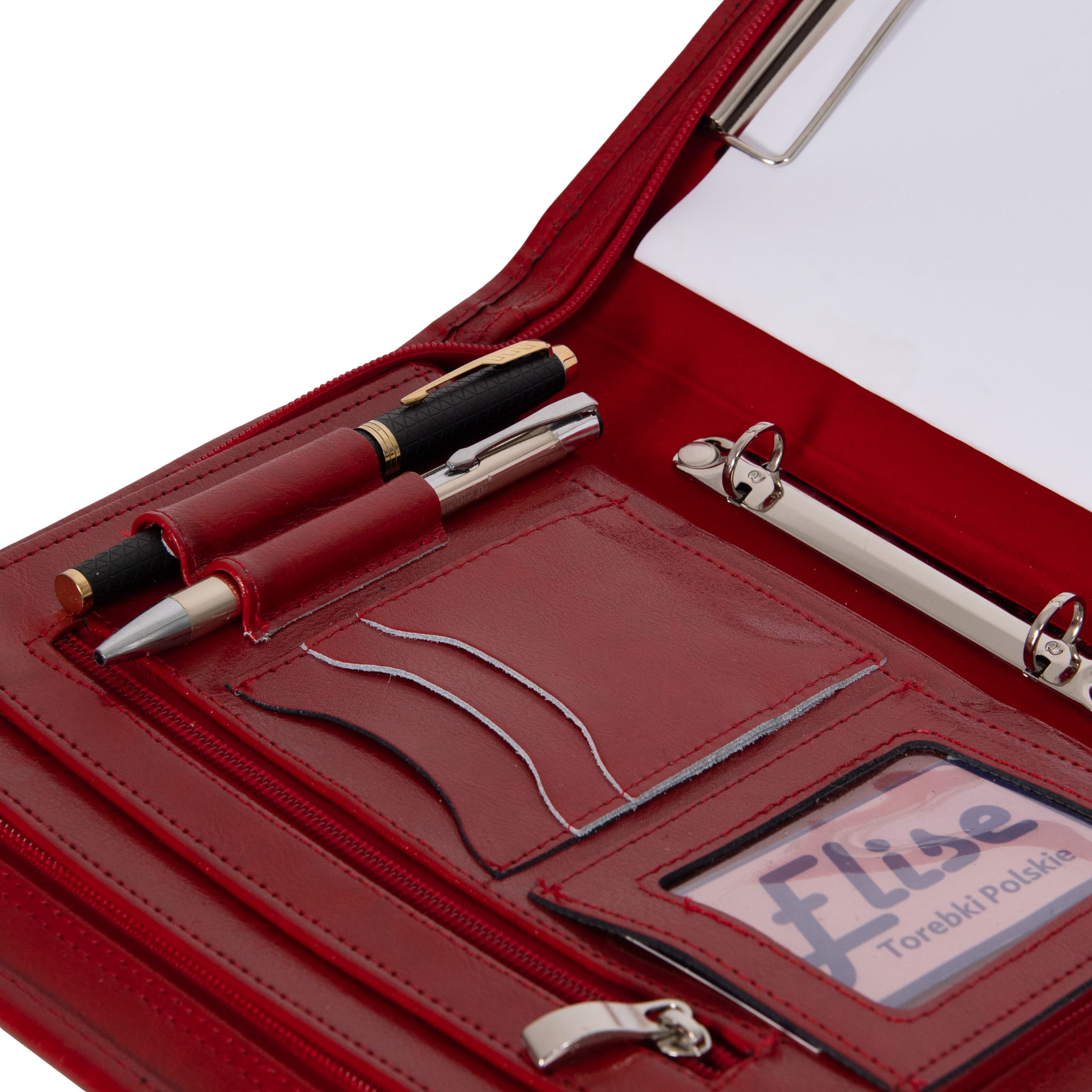 Miejsca na wizytówki oraz transparentne okienko na dowód osobisty lub zdjęcie,