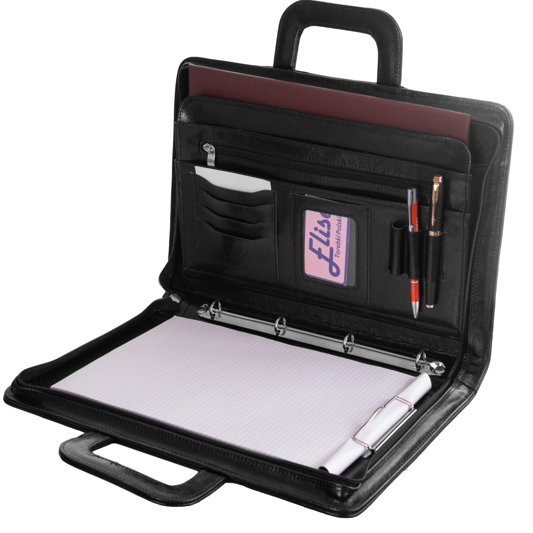 Wnętrze aktówki zostało zaprojektowane tak, aby ułatwić segregację najważniejszych materiałów firmowych. Ten model oferuje: