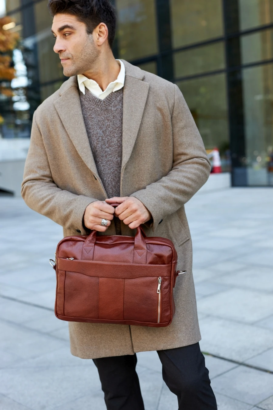 Wspomniane wcześniej uporządkowane wnętrze nie pomoże jeżeli męska torba skórzana nie będzie miała wystarczającej ilości kieszonek na zewnątrz. Kto chciałby w pośpiechu szukać kluczy, telefonu czy portfela w zapakowanym wnętrzu torby? Tu z pomocą przychodzą: jedna mniejsza i jedna duża kieszonka z przodu oraz całkiem pojemna z tyłu - wszystkie zamykane na zamek błyskawiczny.