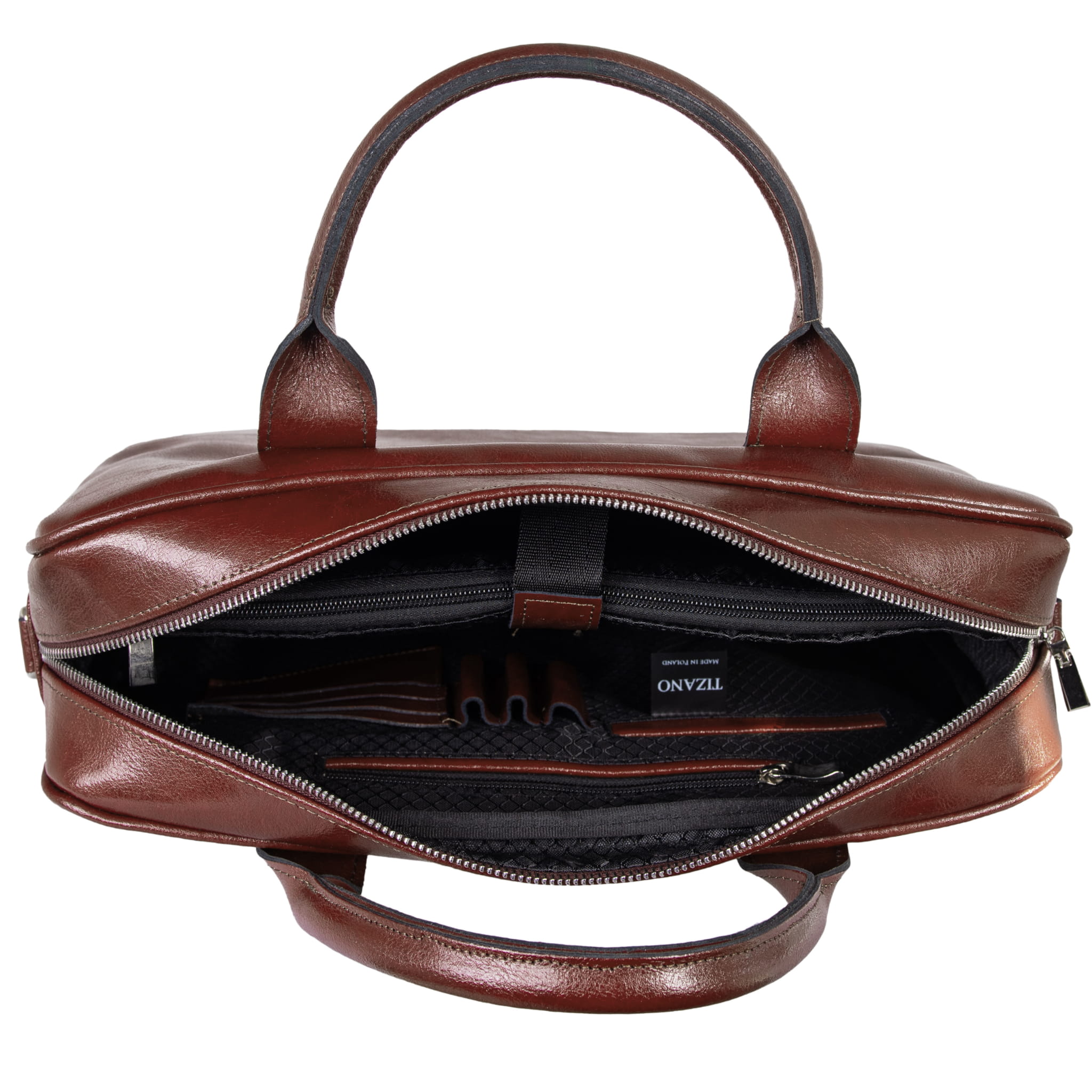 W skórzanej torbie Tizano zmieścisz bardzo wiele! Na pewno znajdziesz w niej miejsce dla wszystkich rzeczy, które są Ci potrzebne na co dzień. Do Twojej dyspozycji pozostają 2 bardzo pojemne kieszenie wewnętrzne, dodatkowa kieszeń zapinana na zamek błyskawiczny oraz mniejsze przegródki na drobiazgi.