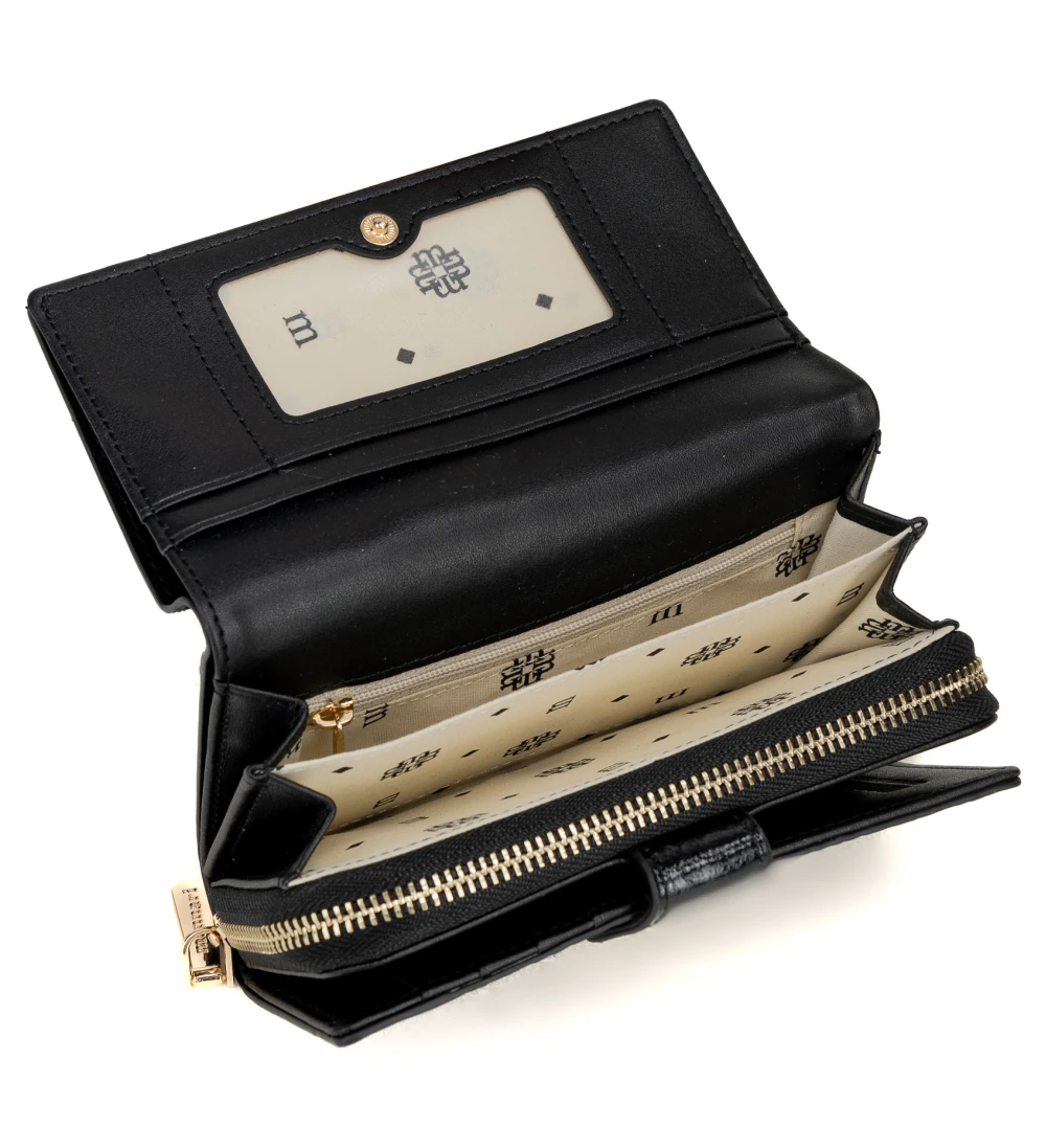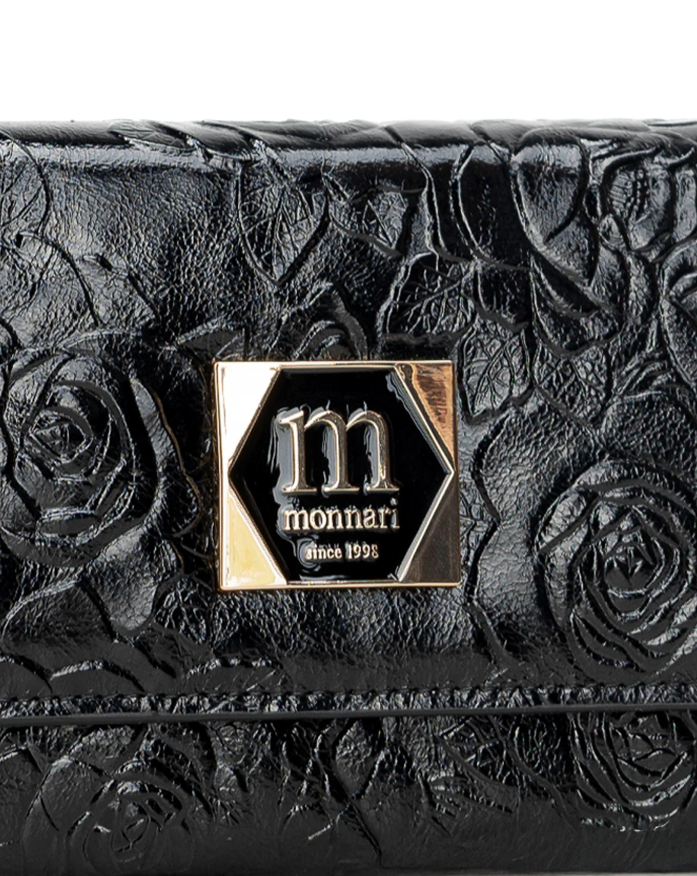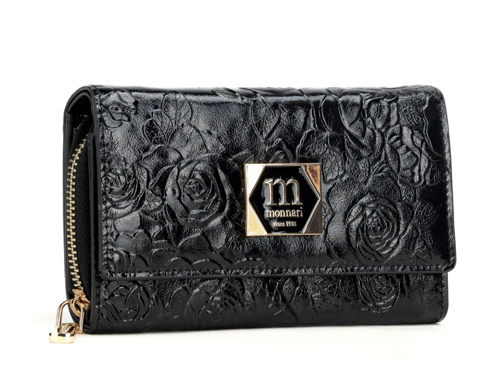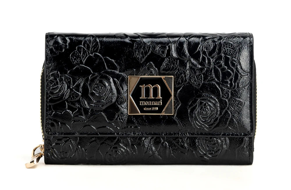 Średni portfel damski skórzany Monnari czarny kwiaty – elegancki i praktyczny