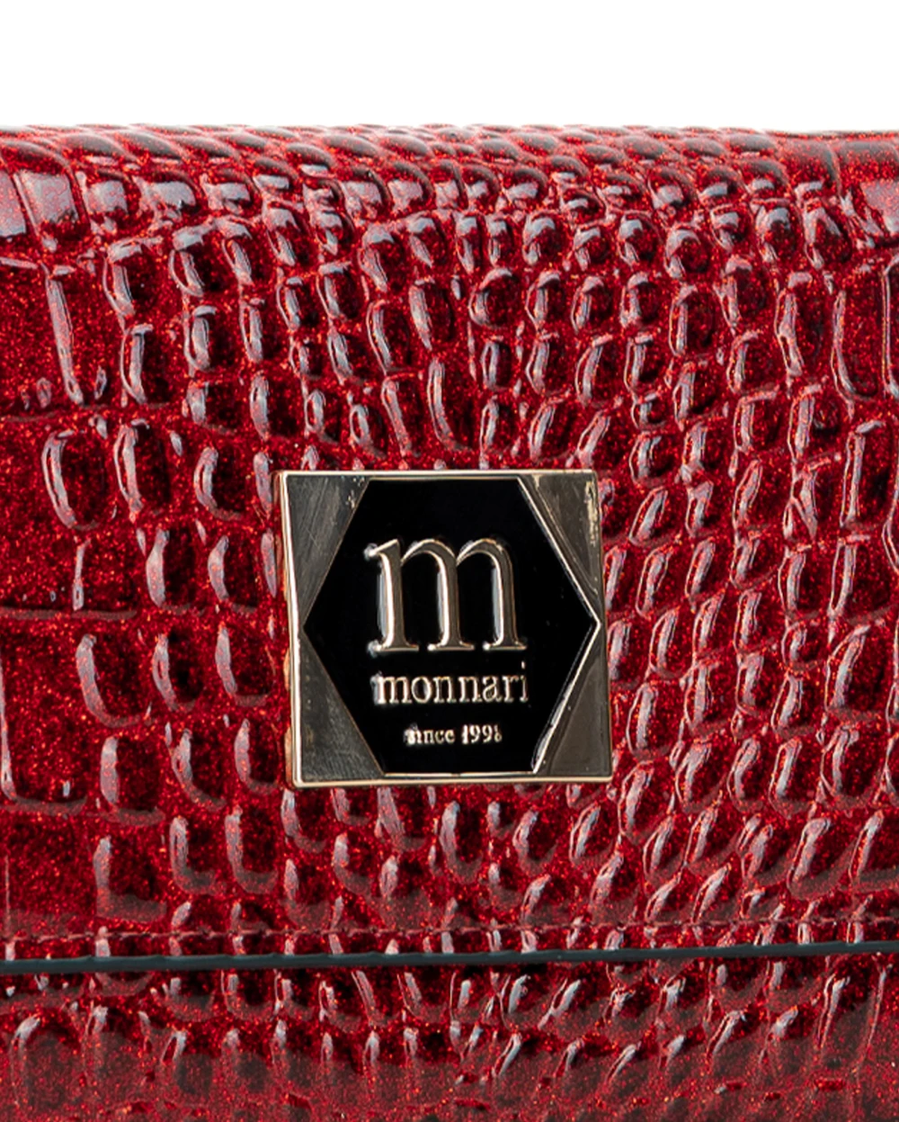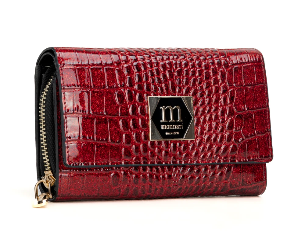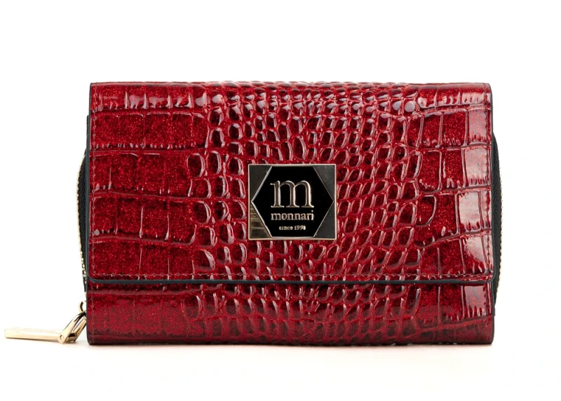 Średni portfel damski skórzany Monnari czerwony brokat krokodyl – elegancki i praktyczny