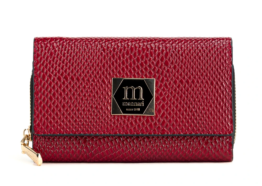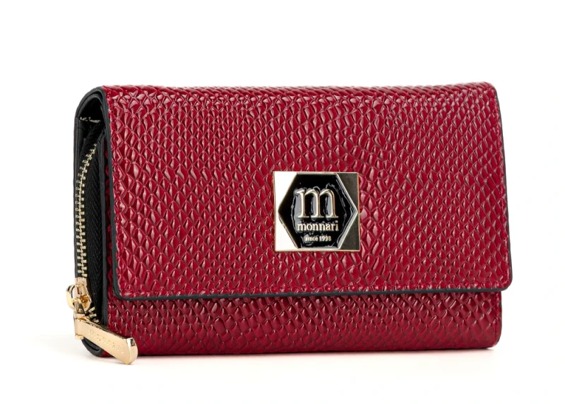 Średni portfel damski skórzany Monnari czerwony skóra węża – elegancki i praktyczny
