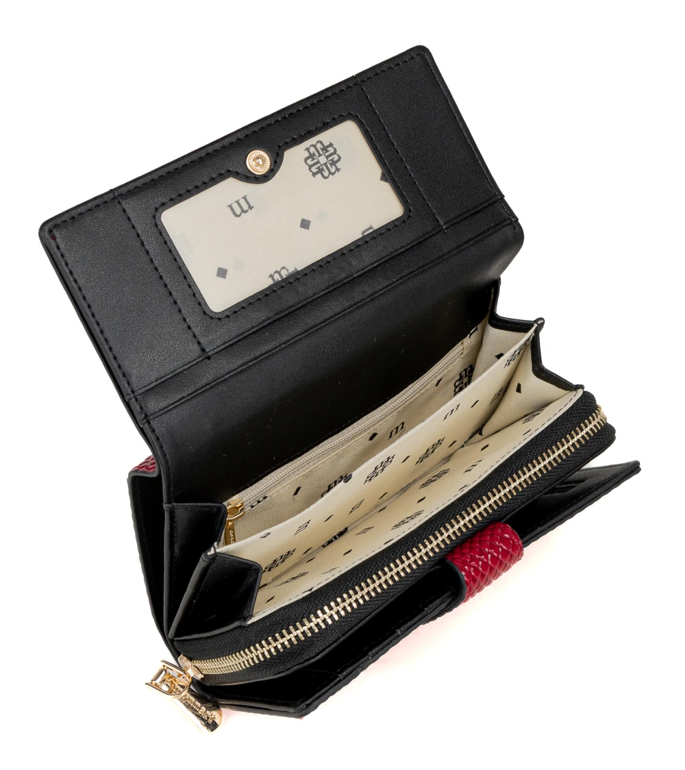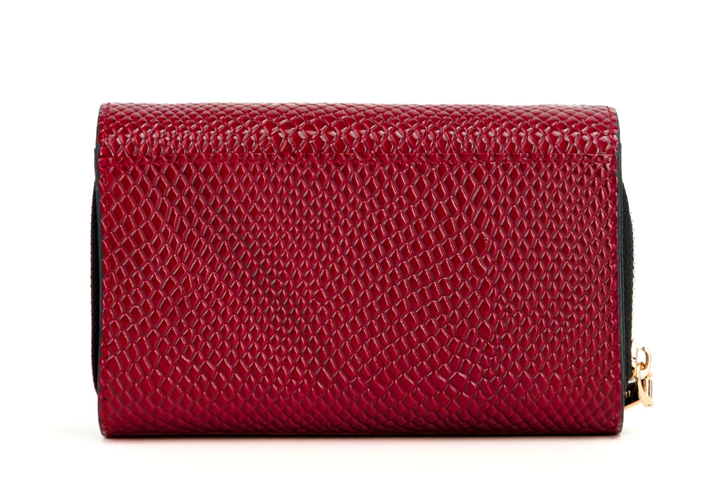 Elegancki czerwony kolor w połączeniu z fakturą skóry węża nadaje portfelowi wyjątkowego charakteru.