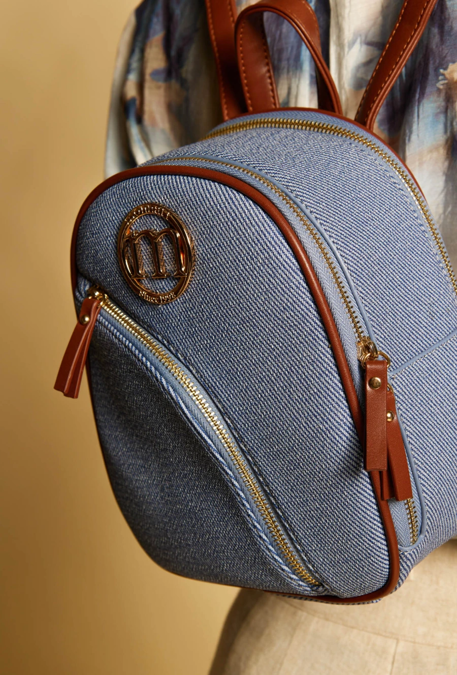 Sportowa Elegancja: Połącz go z dzianinową sukienką midi i skórzaną ramoneską. Złote okucia plecaka dodadzą stylizacji szyku.
