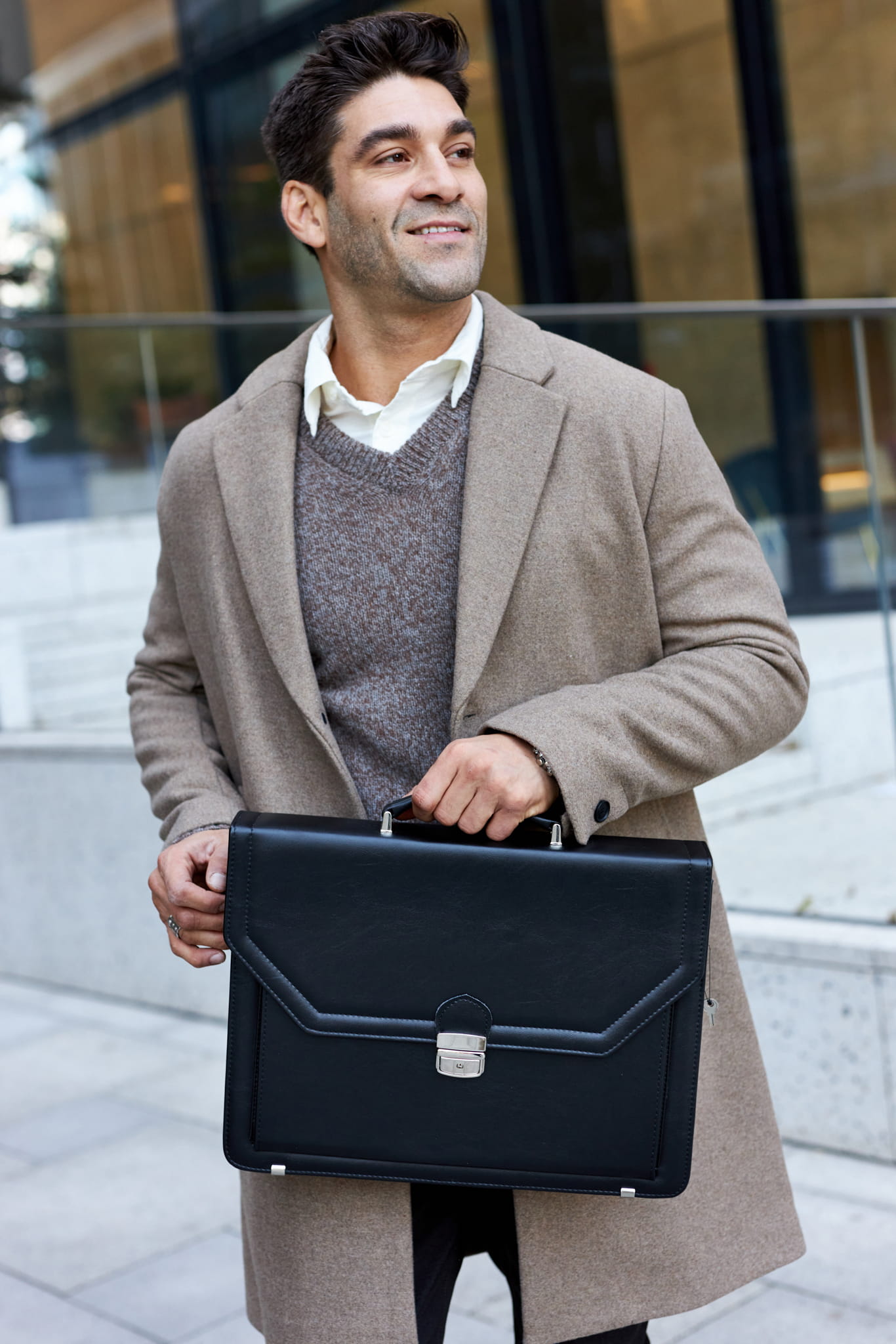 Prezentowana teczka męska to efekt pasji i dwóch dekad doświadczenia w branży kaletniczej. Każdy egzemplarz powstaje w polskiej pracowni, co pozwala nam na pełną kontrolę nad procesem produkcji – od wyboru materiałów, po ostatni szew. Wysokiej klasy skóra ekologiczna oraz starannie dobrane dodatki kaletnicze sprawiają, że torba prezentuje się niezwykle prestiżowo, będąc jednocześnie etyczną alternatywą dla skóry naturalnej.