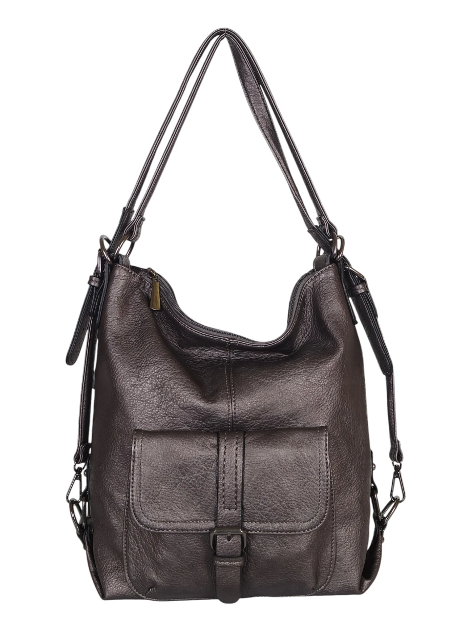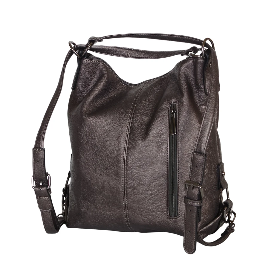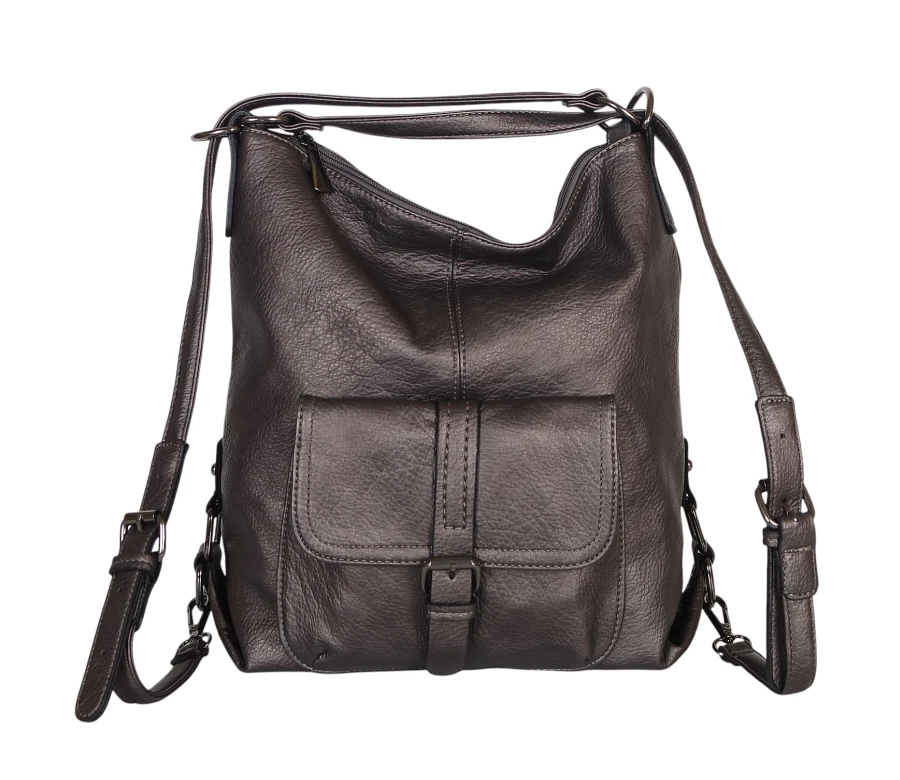 Torbo plecak damski 2w1 – metaliczny elegancki torebko plecak A4 ze skóry ekologicznej