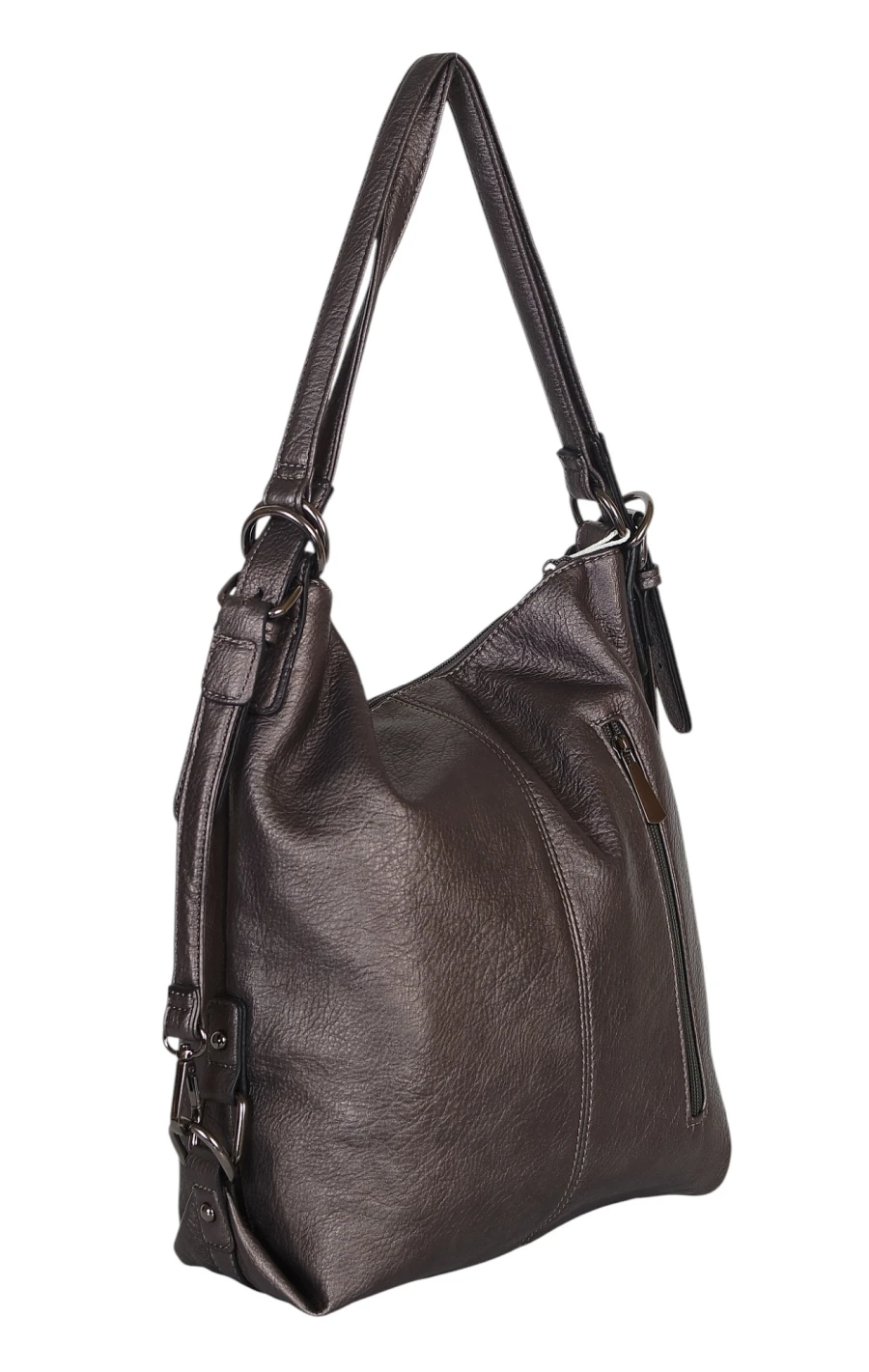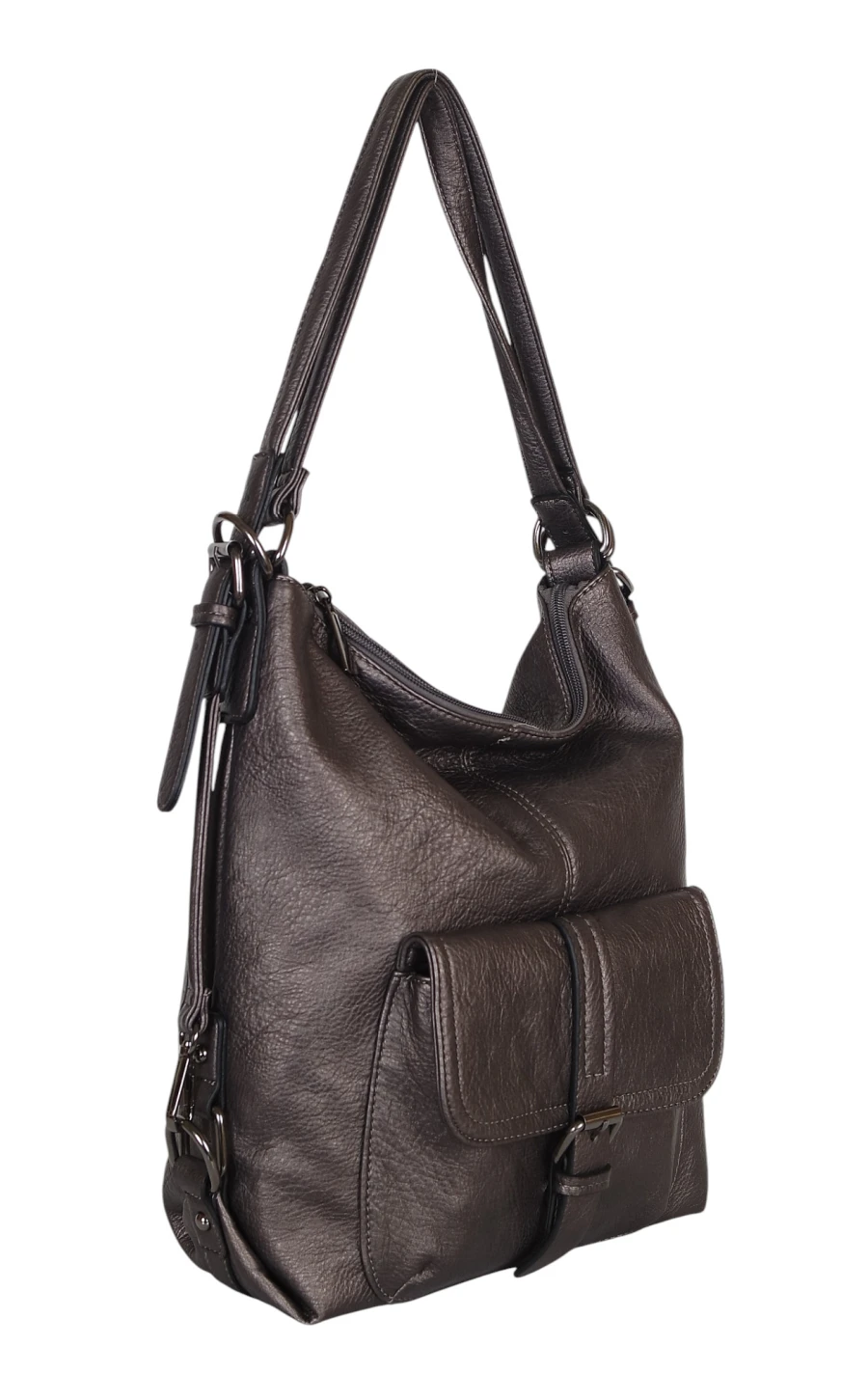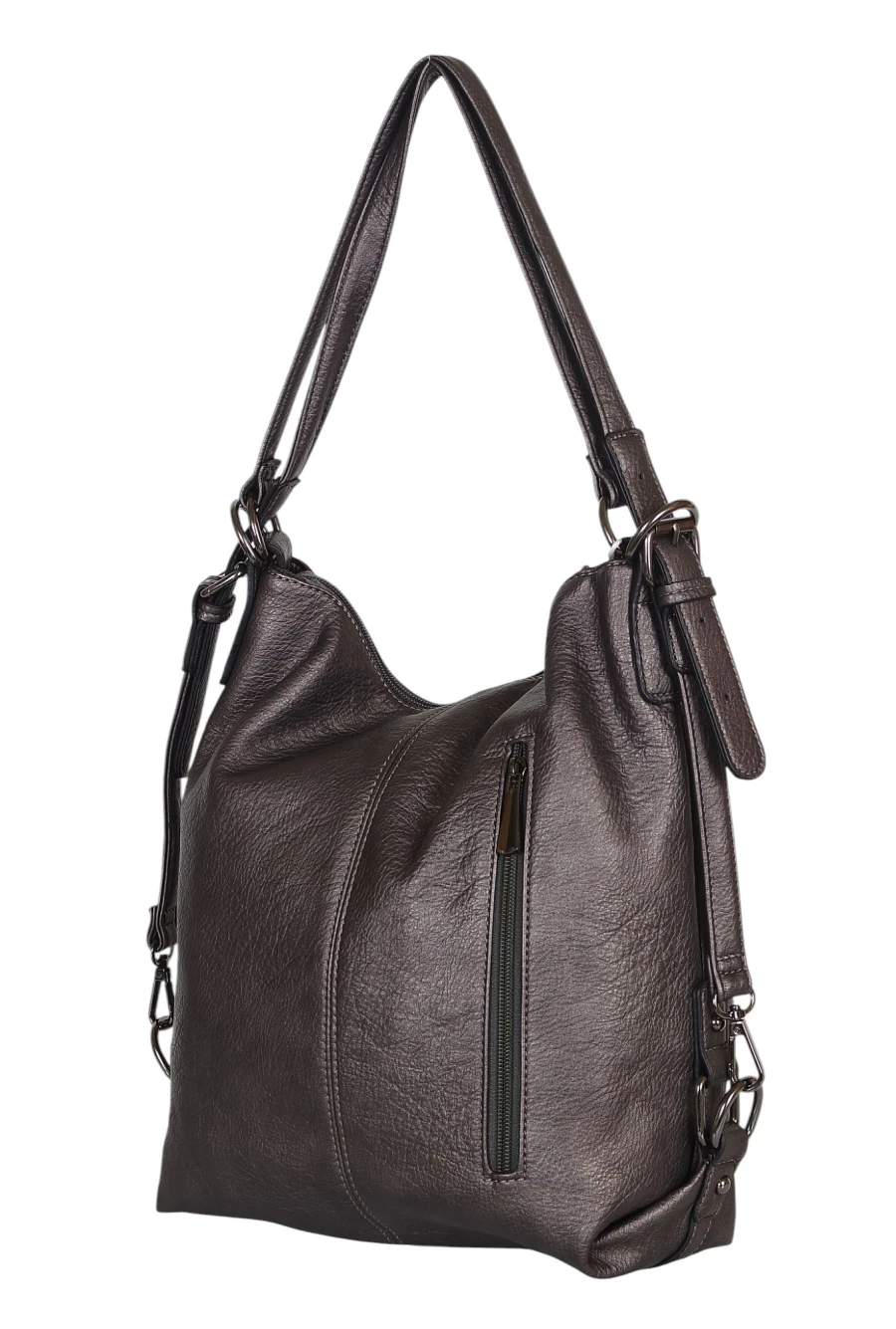 Torbo plecak damski 2w1 – metaliczny elegancki torebko plecak A4 ze skóry ekologicznej