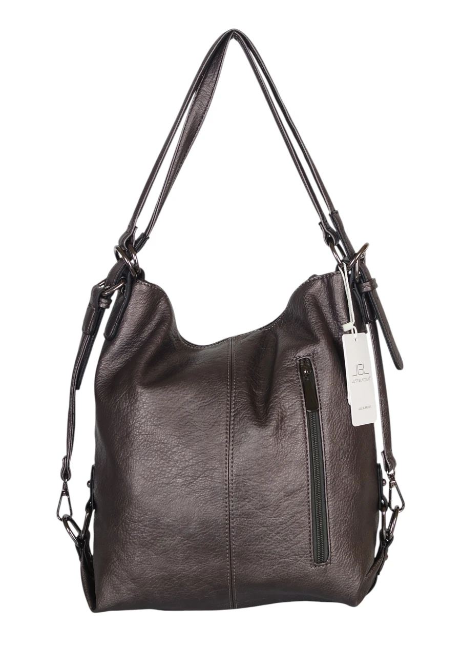 To torbo plecak – można nosić go na kilka sposobów: jako klasyczną torebkę na ramię na krótkim pasku, przewieszoną przez ramię na dłuższym, regulowanym pasku lub jak plecak damski na dwóch paskach. Dzięki temu to wyjątkowo funkcjonalny model, który sprawdzi się w każdej sytuacji.