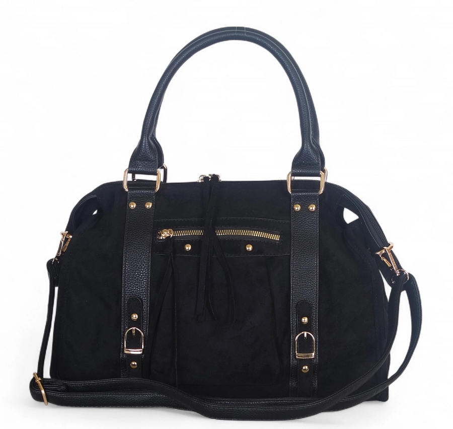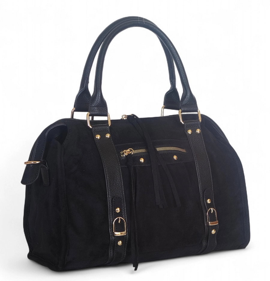 • modna torebka zamszowa w połączeniu z eko skórą,
