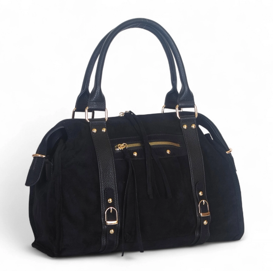 Nowy model z kolekcji Jesień Zima 2025/26 marki Gallantry Paris® to esencja paryskiego stylu. Torebka wykonana z połączenia miękkiego zamszu ekologicznego i trwałej eko skóry wyróżnia się niepowtarzalnym designem i perfekcyjnym wykończeniem.