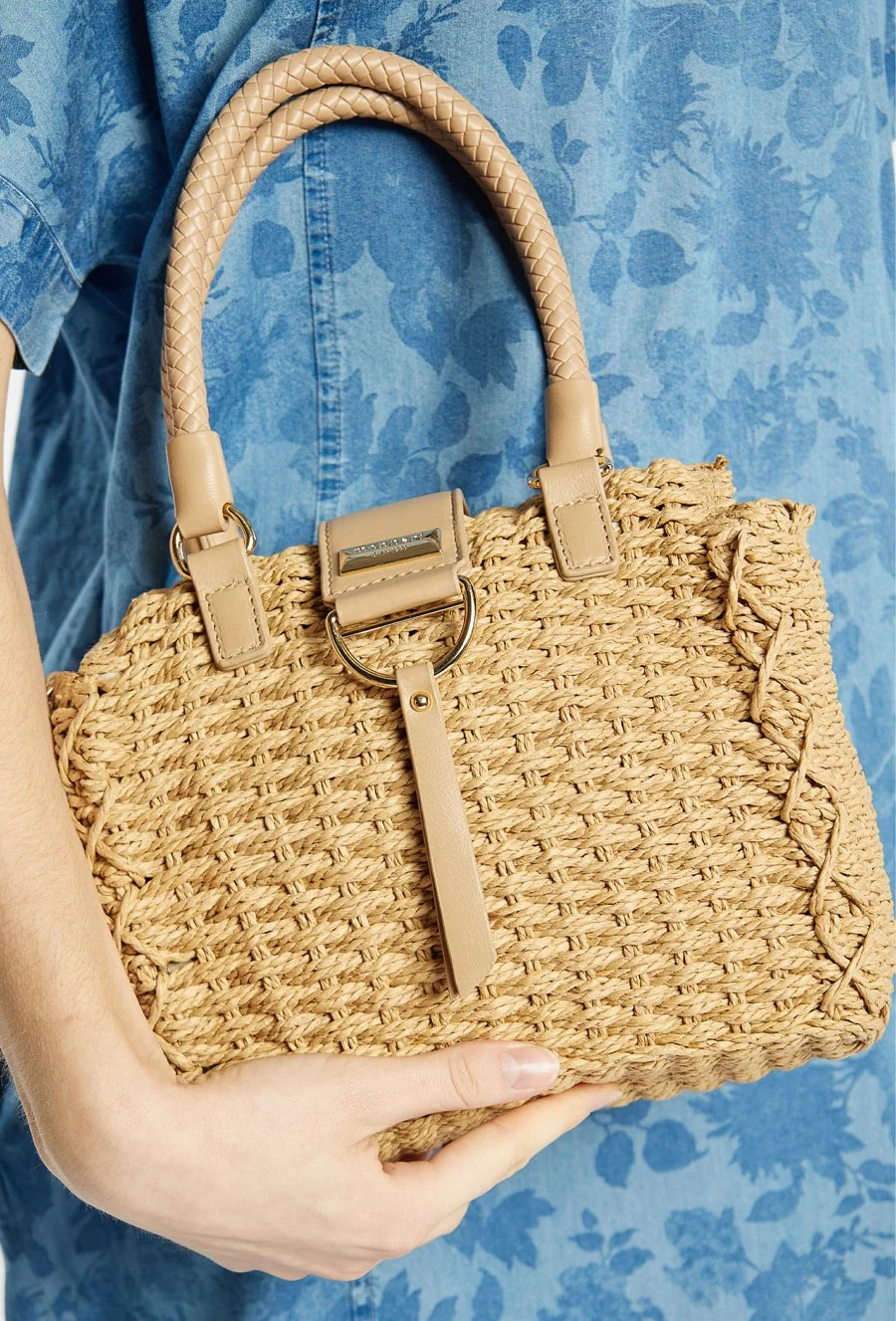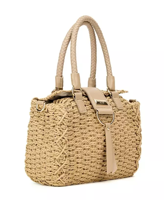 Postaw na styl i wygodę z wyjątkową torebką listonoszką Monnari w kształcie eleganckiego kuferka. Wykonana z wysokiej jakości papieru słomkowego oraz eko skóry, torebka ta idealnie wpisuje się w letnie trendy i pasuje zarówno do codziennych stylizacji, jak i bardziej eleganckich wyjść.