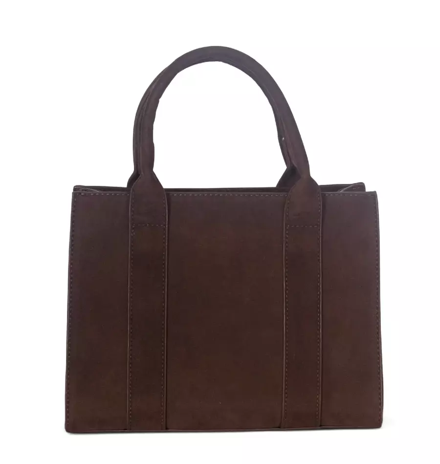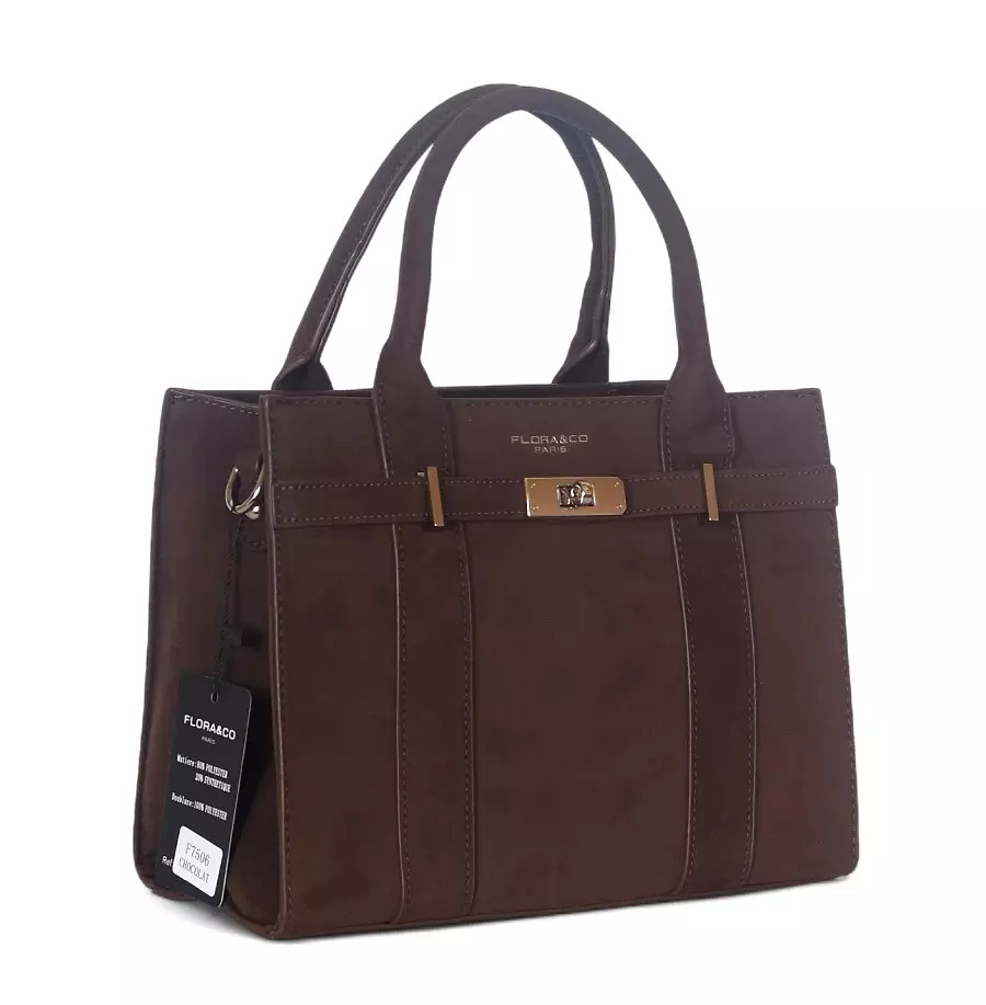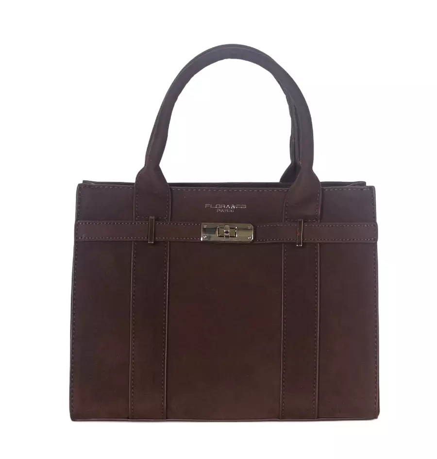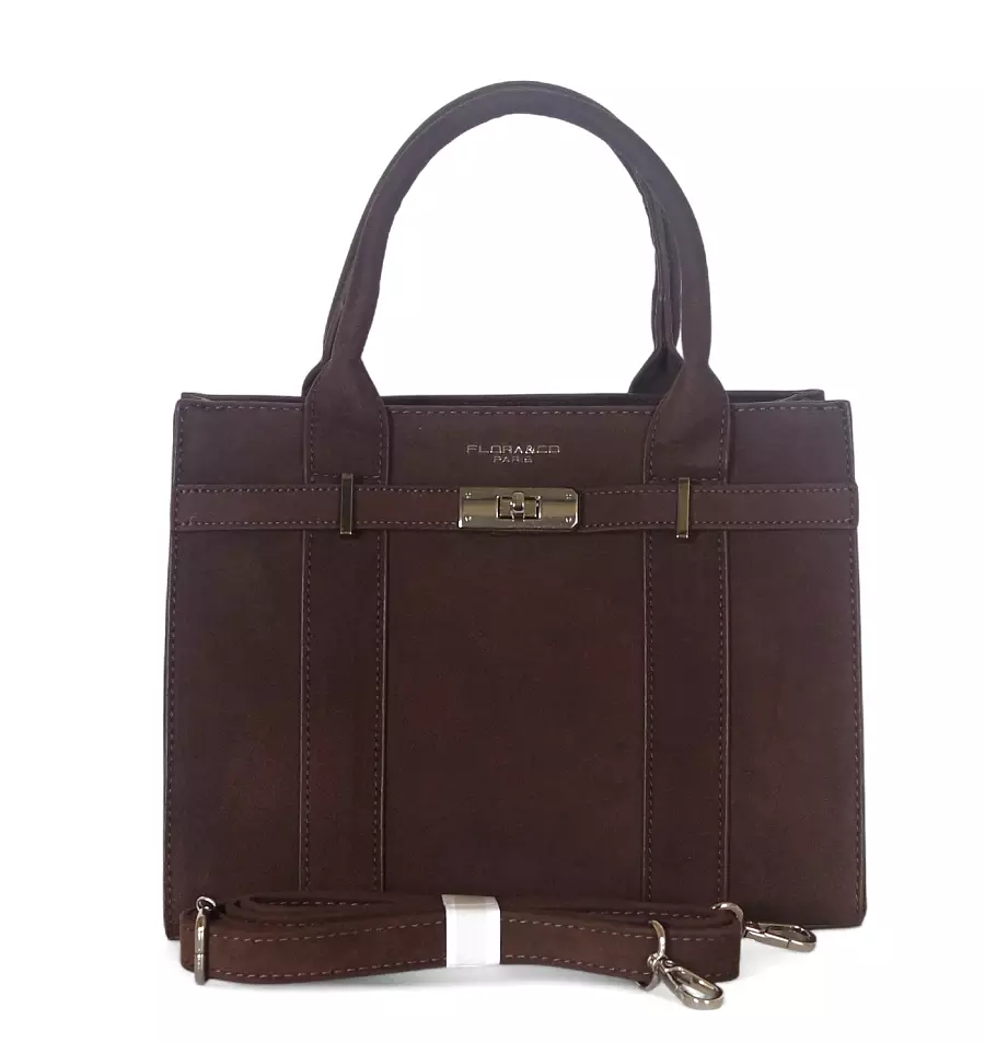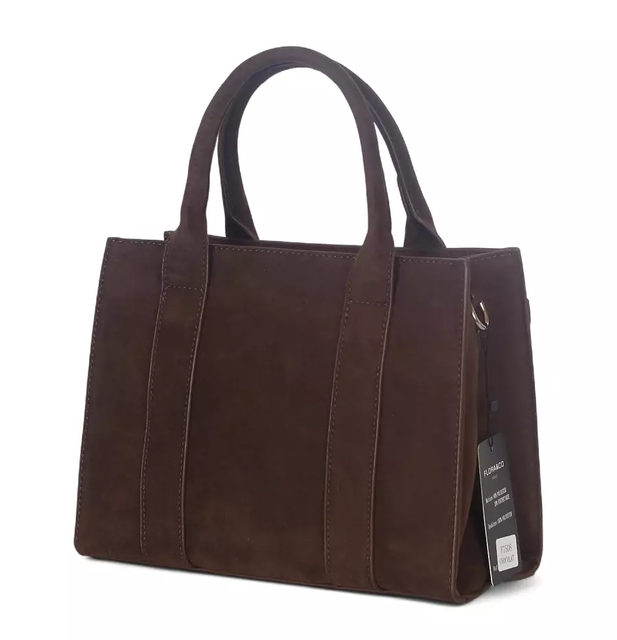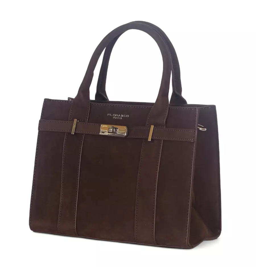Torebka damska Flora&Co – czekoladowy zamszowy kuferek z paskiem