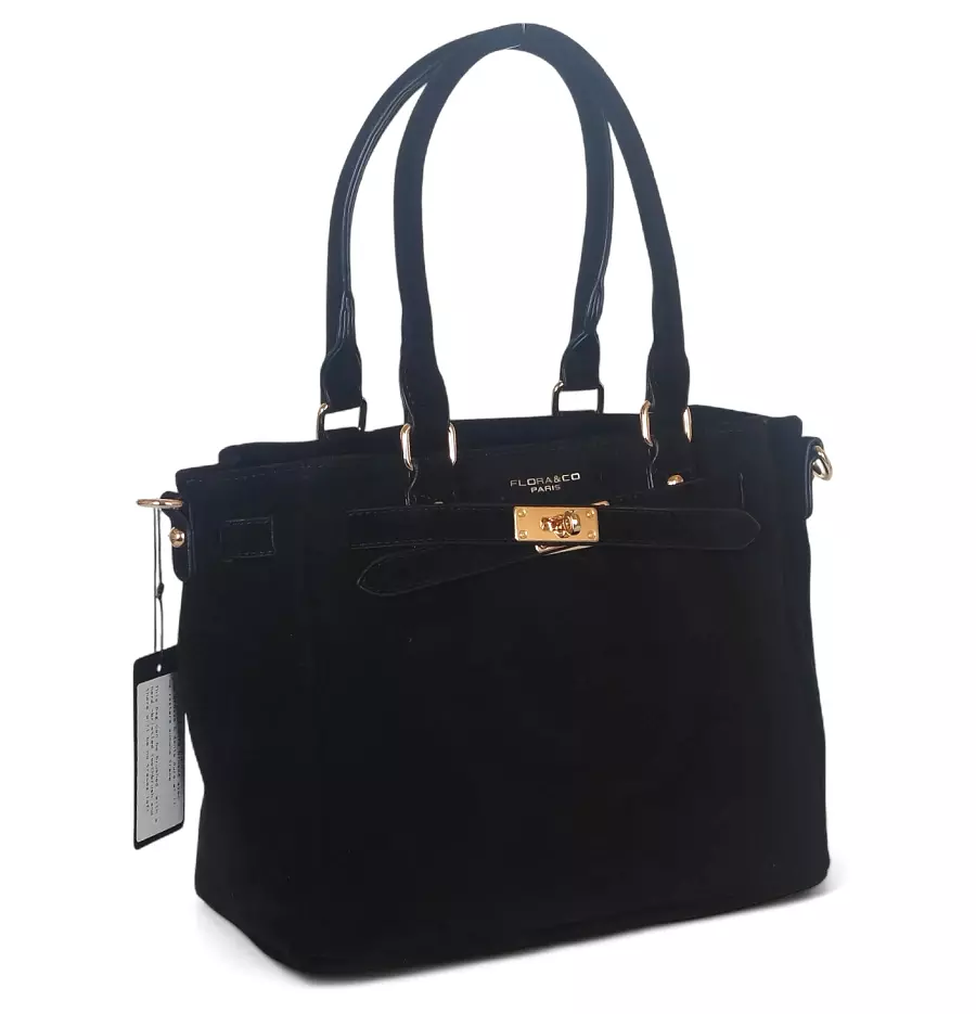Torebka damska Flora&Co – zgrabny czarny shopper z zamszu ekologicznego