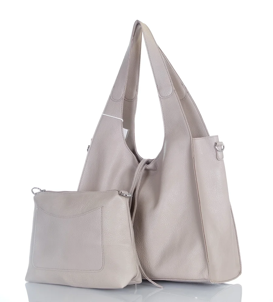 Torebka damska shopper Beżowa Saszetka 2w1 Na suwak Pojemna