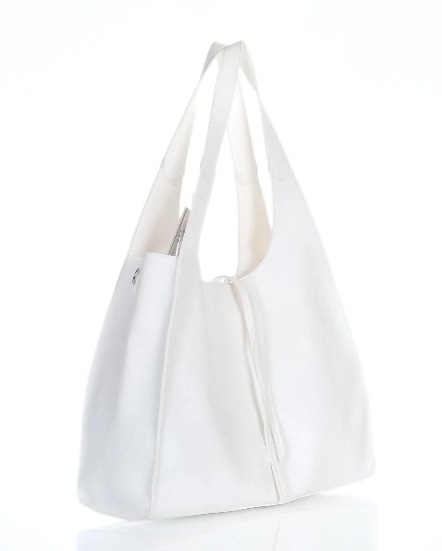 Torebka damska shopper Biała Saszetka 2w1 Na suwak Pojemna