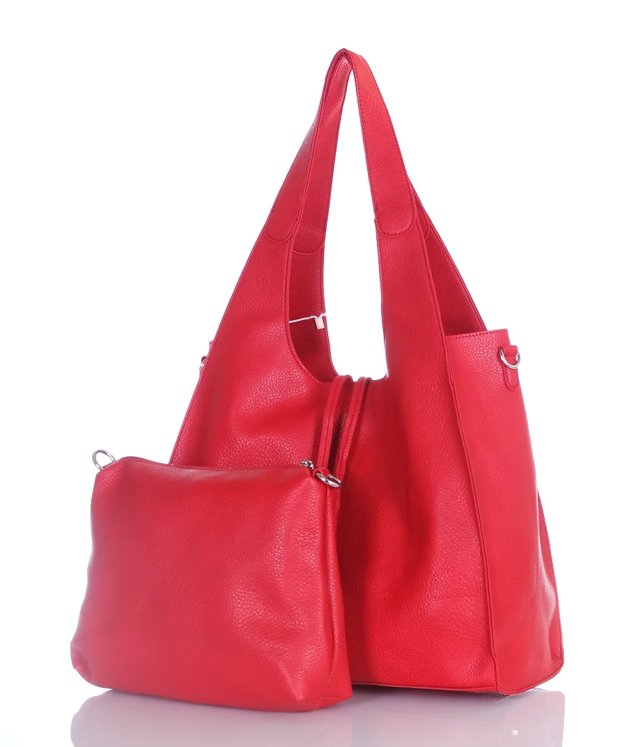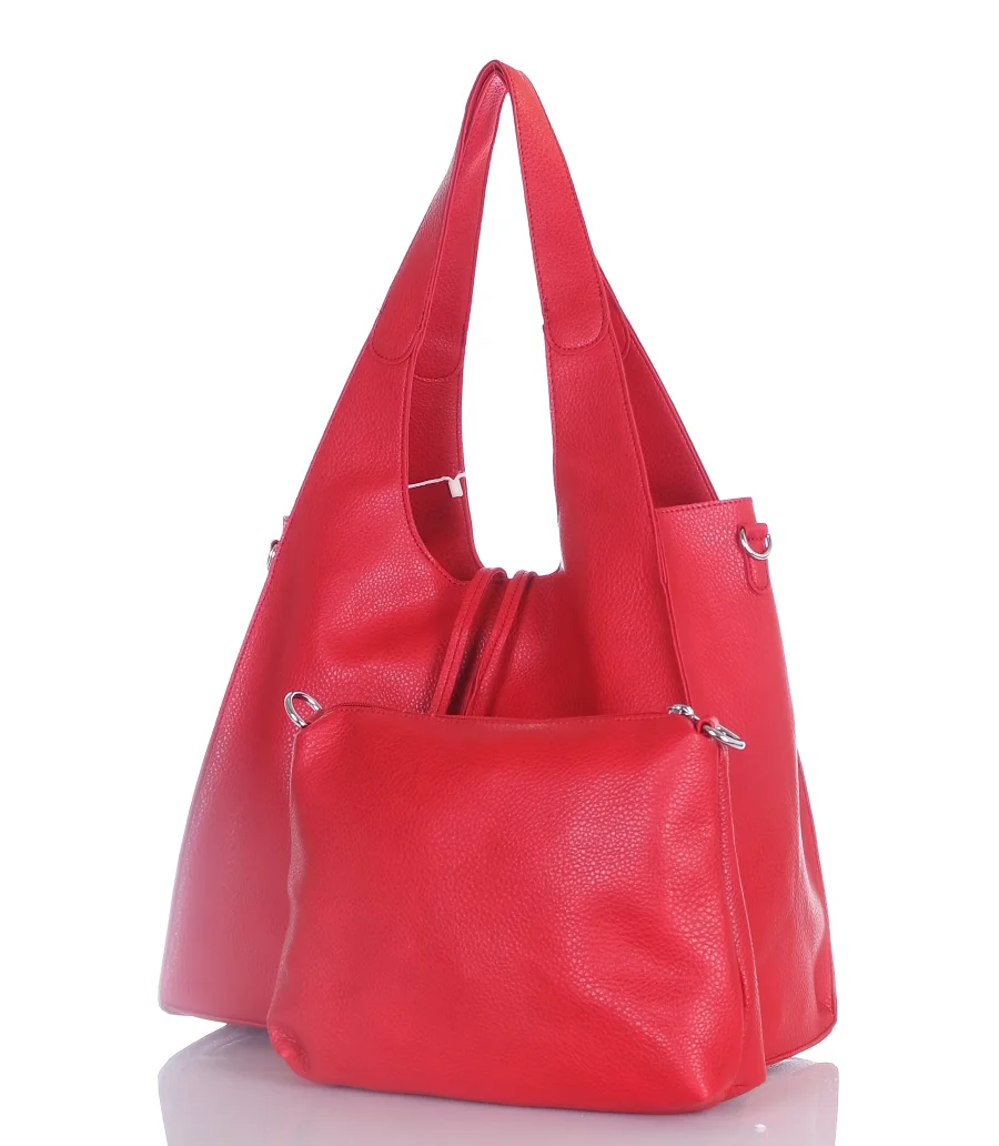 Torebka damska shopper Czerwona Saszetka 2w1 Na suwak Pojemna