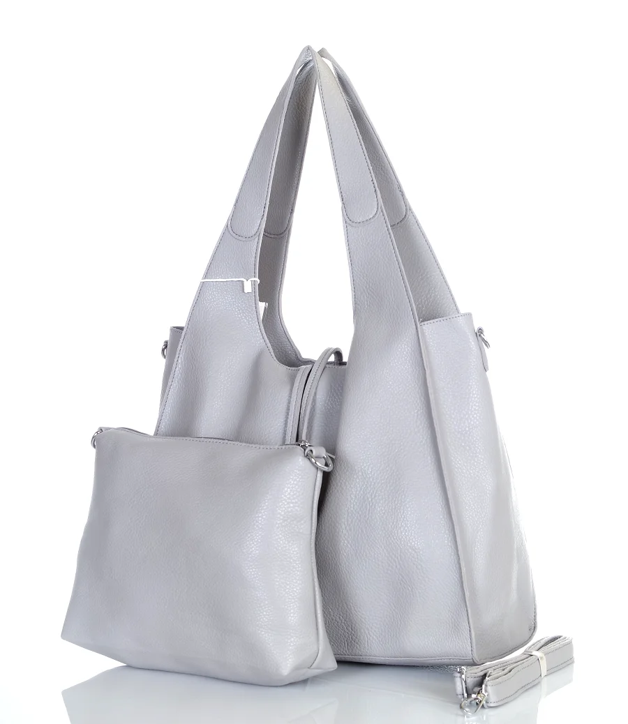 Torebka damska shopper Szara Saszetka 2w1 Na suwak Pojemna