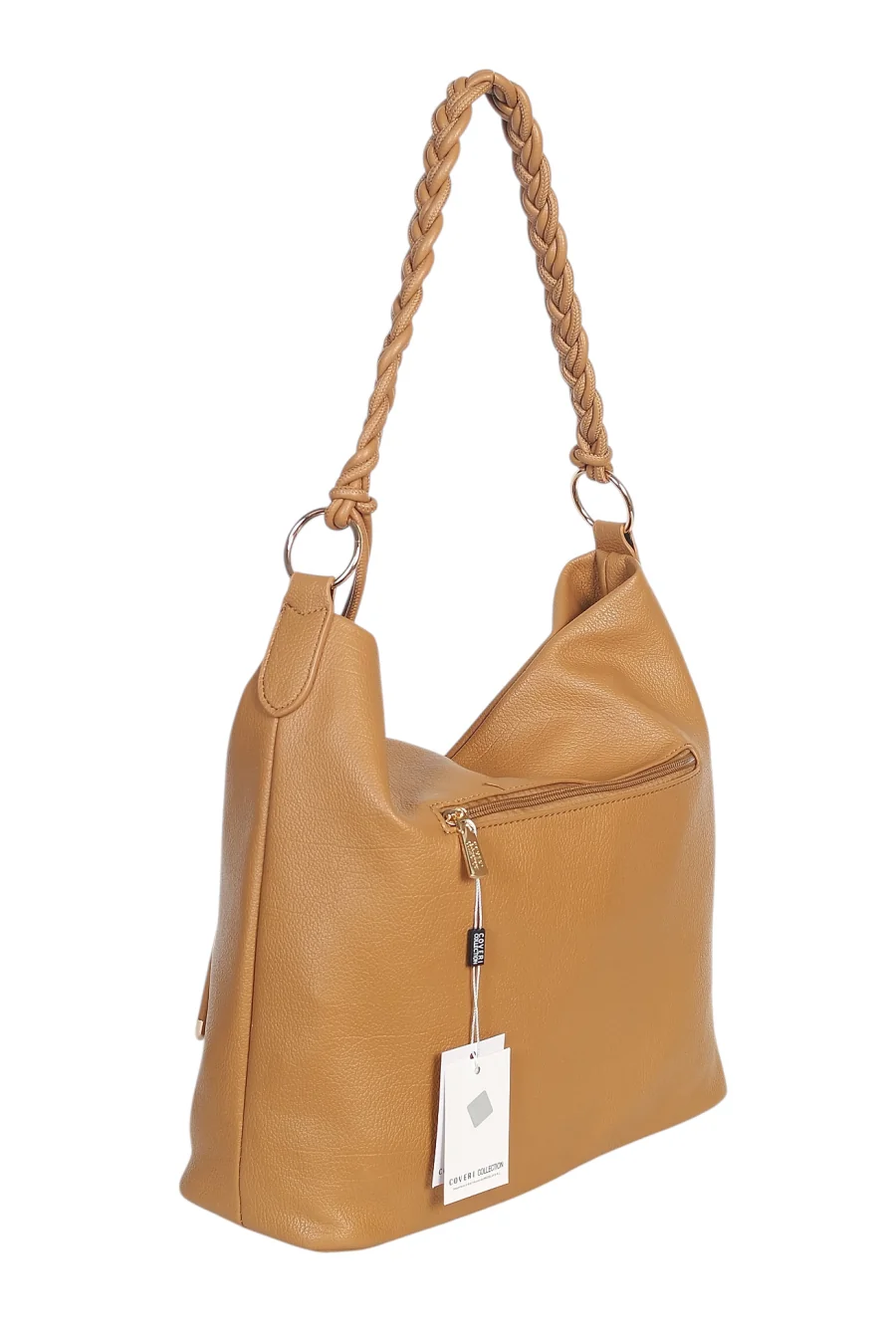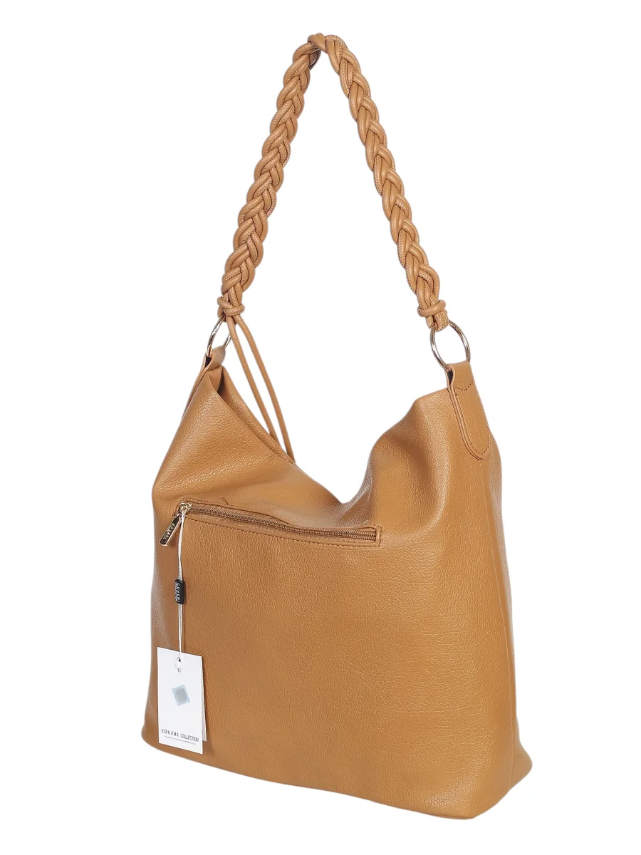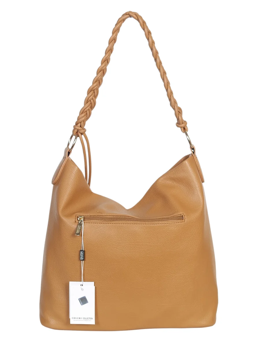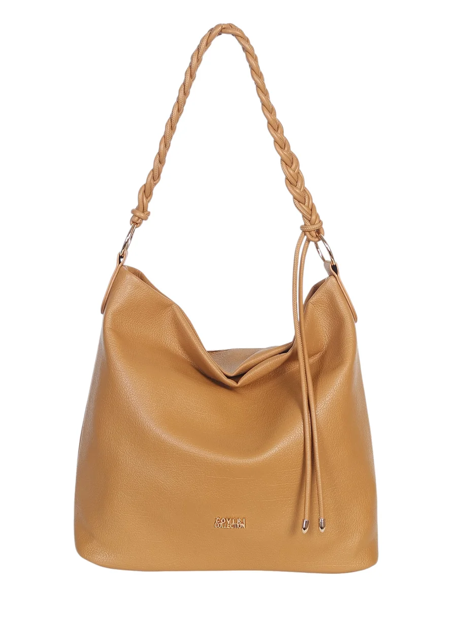 Torebka damska worek Coveri Italy – Miękka torba Mieści A4 Z plecioną rączką
