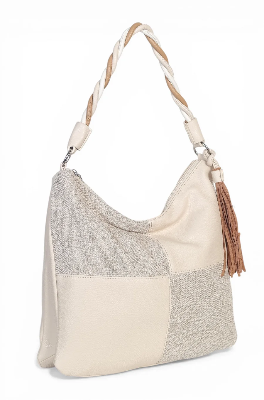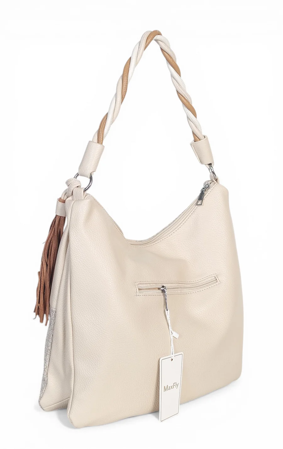 To, co definiuje ten model, to bez wątpienia jego wykończenie. Gruba, efektownie skręcana rączka nie tylko przyciąga wzrok, ale jest również niezwykle wygodna. Dodatkowy, odpinany brelok w stylu boho z długimi frędzlami dodaje torebce dynamiki. Dla Twojej wygody z tyłu umieszczono praktyczną kieszonkę na suwak, a do zestawu dołączono długi, regulowany pasek, który umożliwia noszenie torby na ramieniu lub przez ramię.