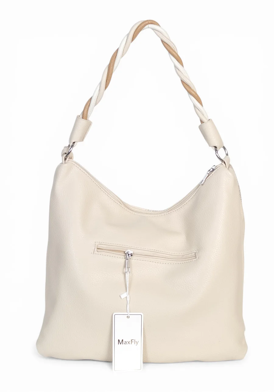 Torebka damska worek Max Fly Italy – plecionka z lnem i skręcana rączka