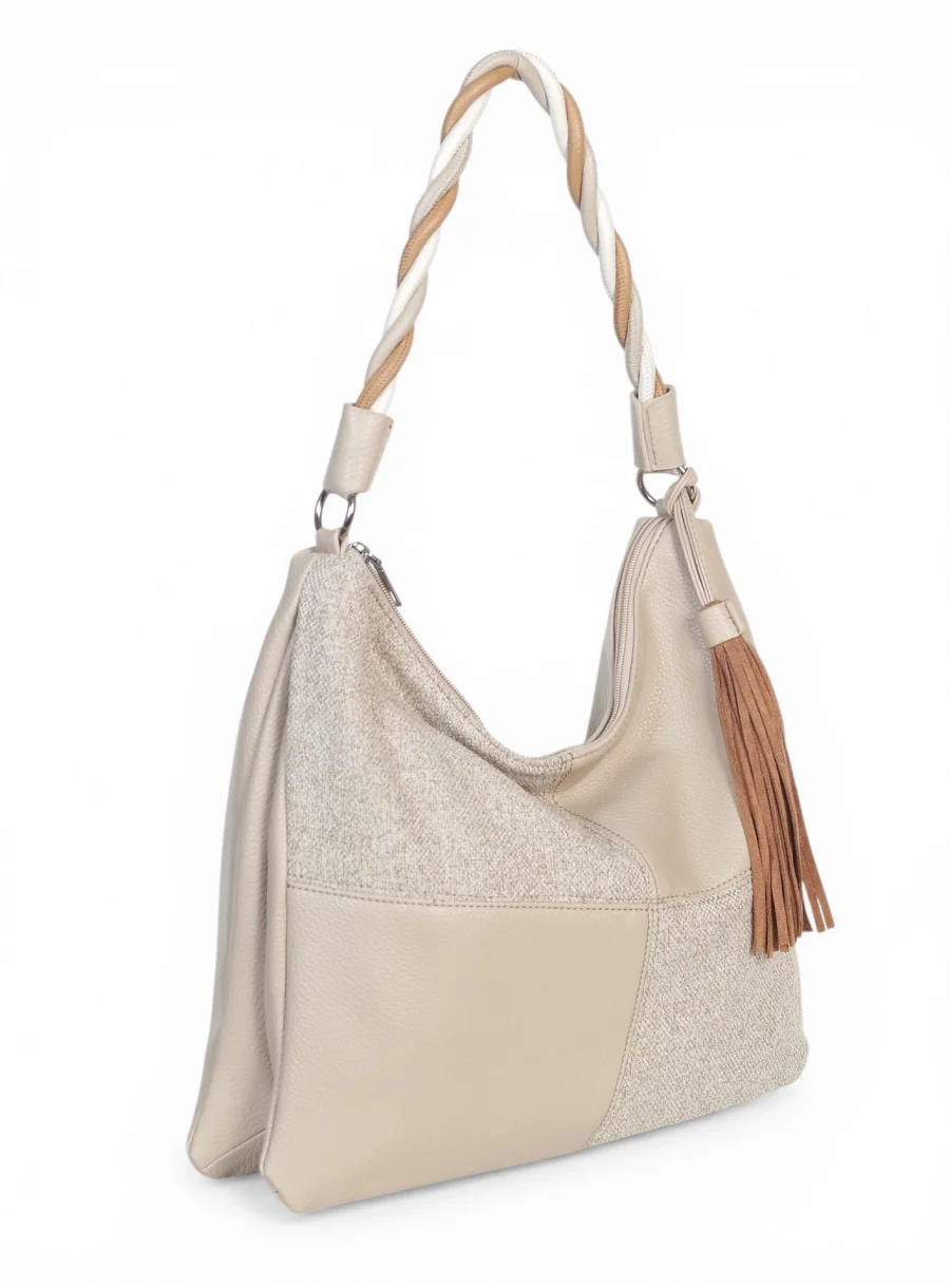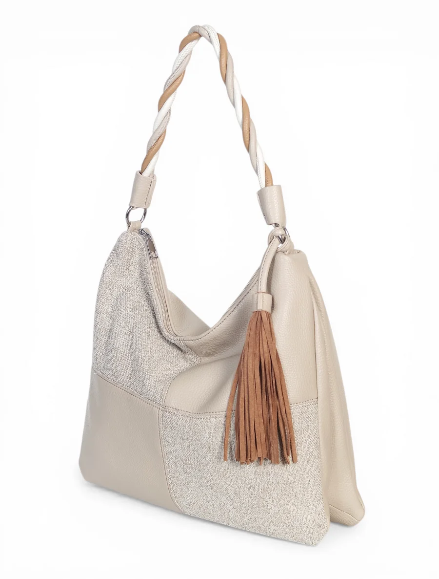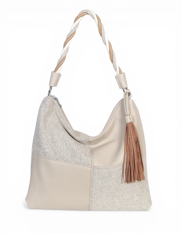 Torebka marki Max Fly Italy wyróżnia się na tle klasycznych modeli swoją nieoczywistą teksturą. Zastosowanie wstawki z materiału o strukturze lnu nadaje jej lekkości i świeżości, idealnie komponując się z gładką eko-skórą. Srebrne okucia dodają całości nowoczesnego sznytu, a miękka, plastyczna forma sprawia, że torba świetnie dopasowuje się do sylwetki podczas noszenia.