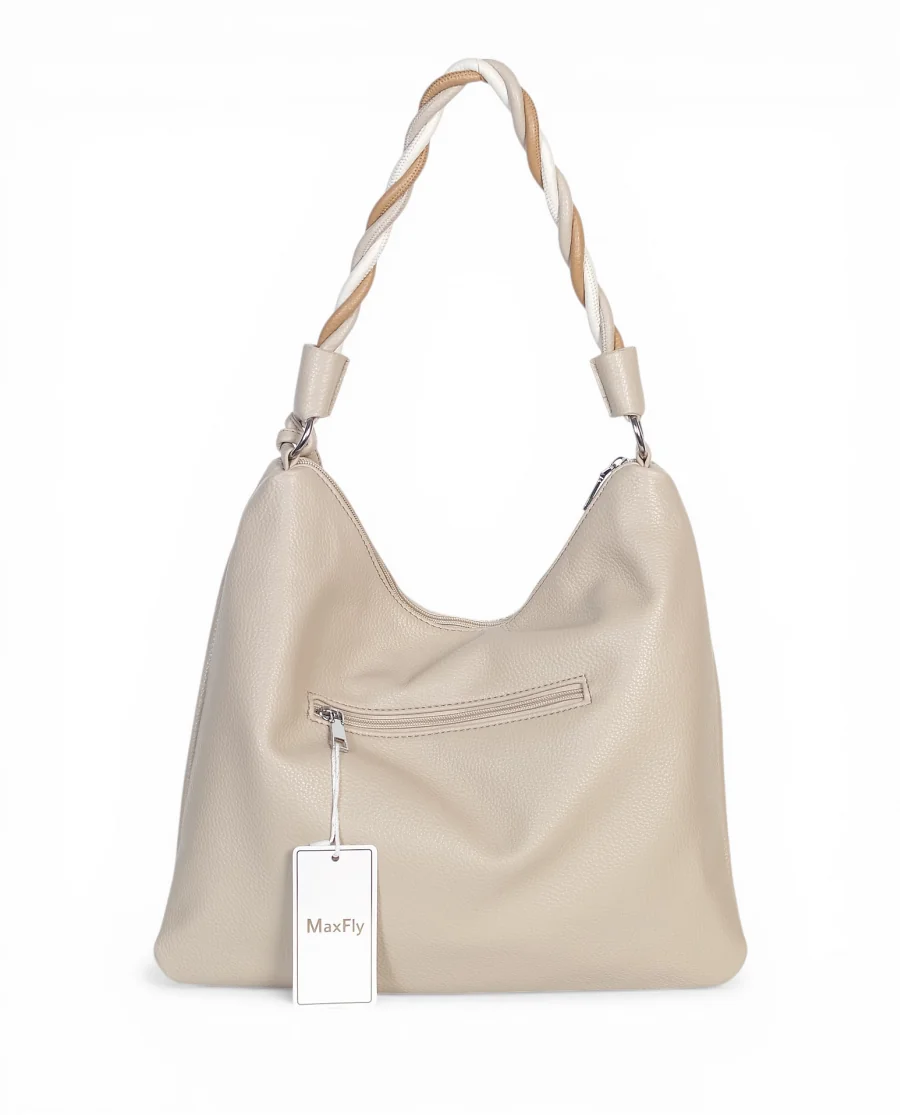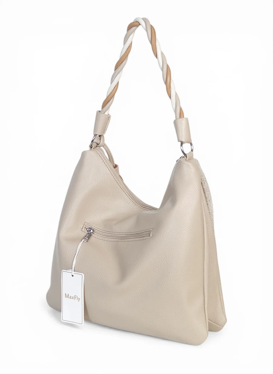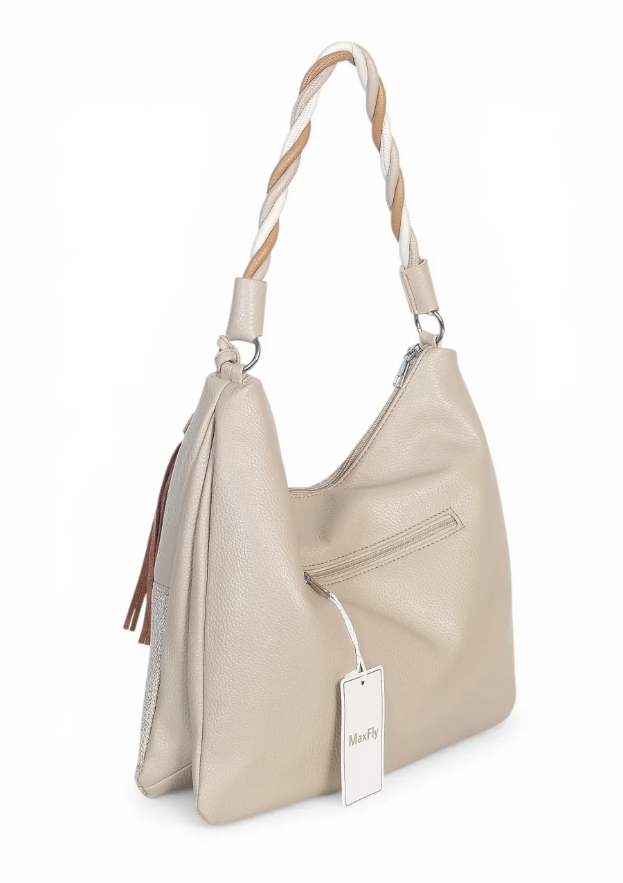 Torebka damska worek Max Fly Italy – plecionka z lnem i skręcana rączka