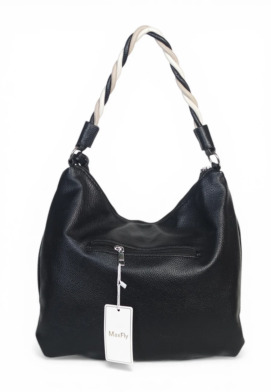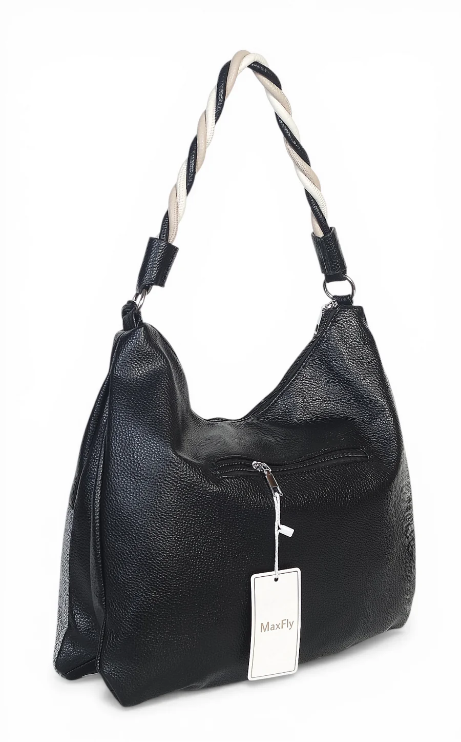Torebka damska worek Max Fly Italy – plecionka z lnem i skręcana rączka