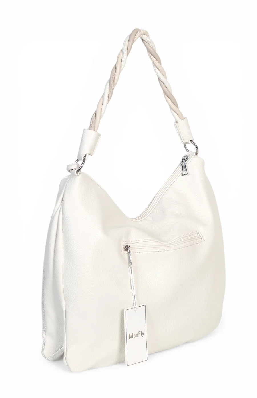 Torebka damska worek Max Fly Italy – plecionka z lnem i skręcana rączka