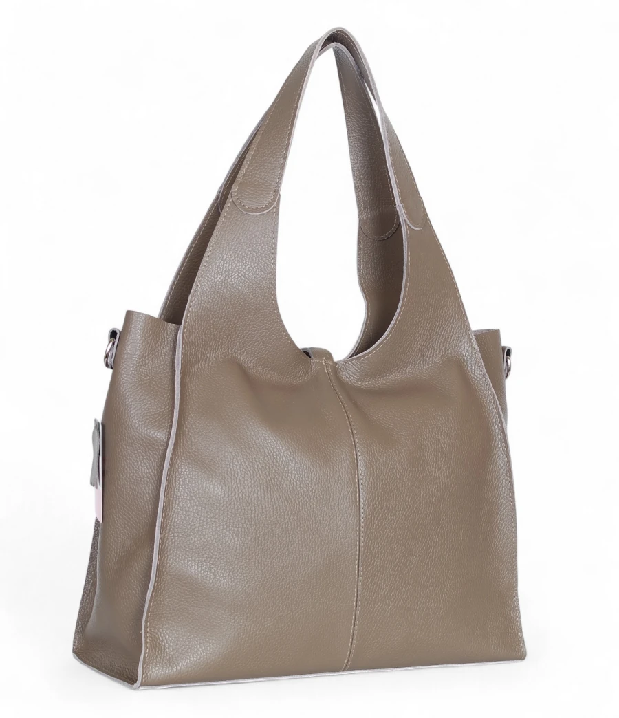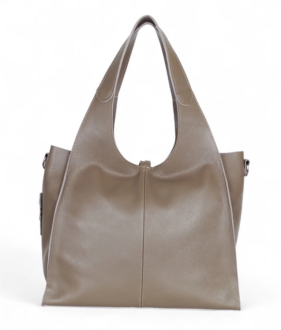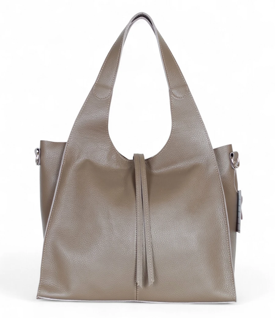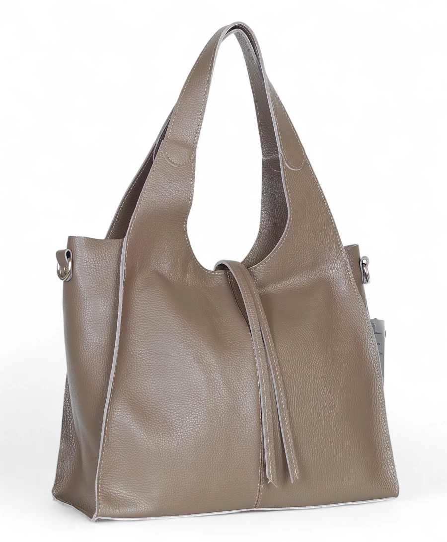 Prezentowany model to duża torba skórzana typu shopper, wykonana z naturalnej skóry Dollaro – miękkiej, mięsistej i niezwykle przyjemnej w dotyku, a przy tym wyjątkowo odpornej na codzienne użytkowanie. Dzięki klasycznemu krojowi i praktycznej formie torba doskonale sprawdzi się zarówno w pracy, jak i w casualowych stylizacjach.