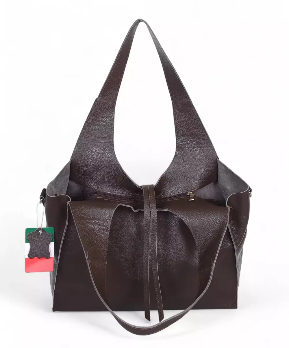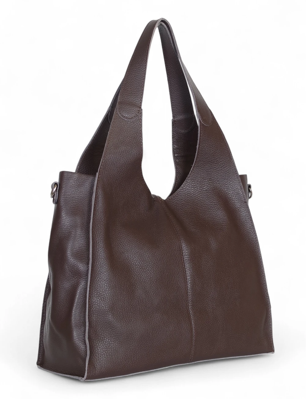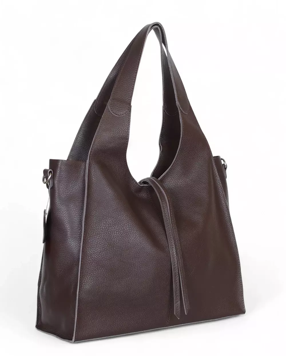 Prezentowany model to duża torba skórzana typu shopper, wykonana z naturalnej skóry Dollaro – miękkiej, mięsistej i niezwykle przyjemnej w dotyku, a przy tym wyjątkowo odpornej na codzienne użytkowanie. Dzięki klasycznemu krojowi i praktycznej formie torba doskonale sprawdzi się zarówno w pracy, jak i w casualowych stylizacjach.