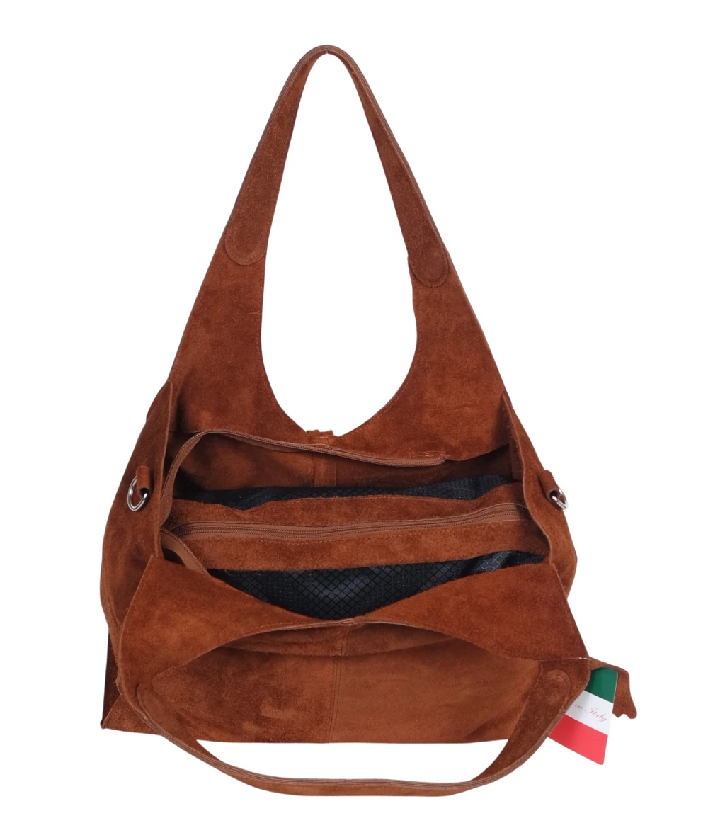 Torebka zamszowa VERA PELLE – duża torba shopper z naturalnego włoskiego zamszu