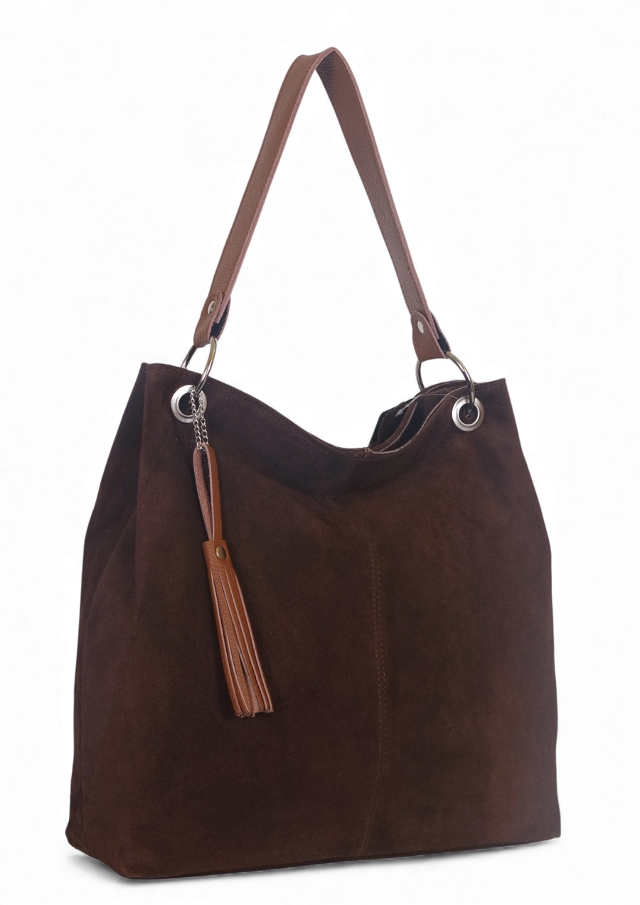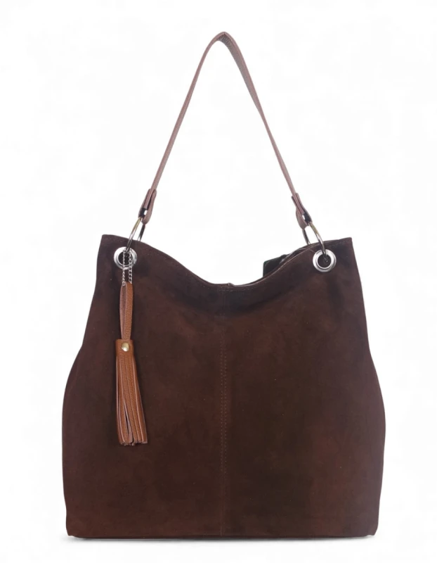 VERA PELLE Brązowa zamszowa torebka SKÓRA ZJ12