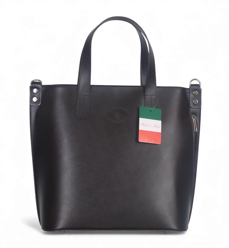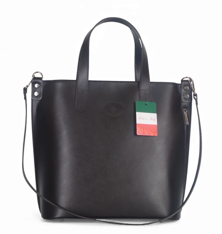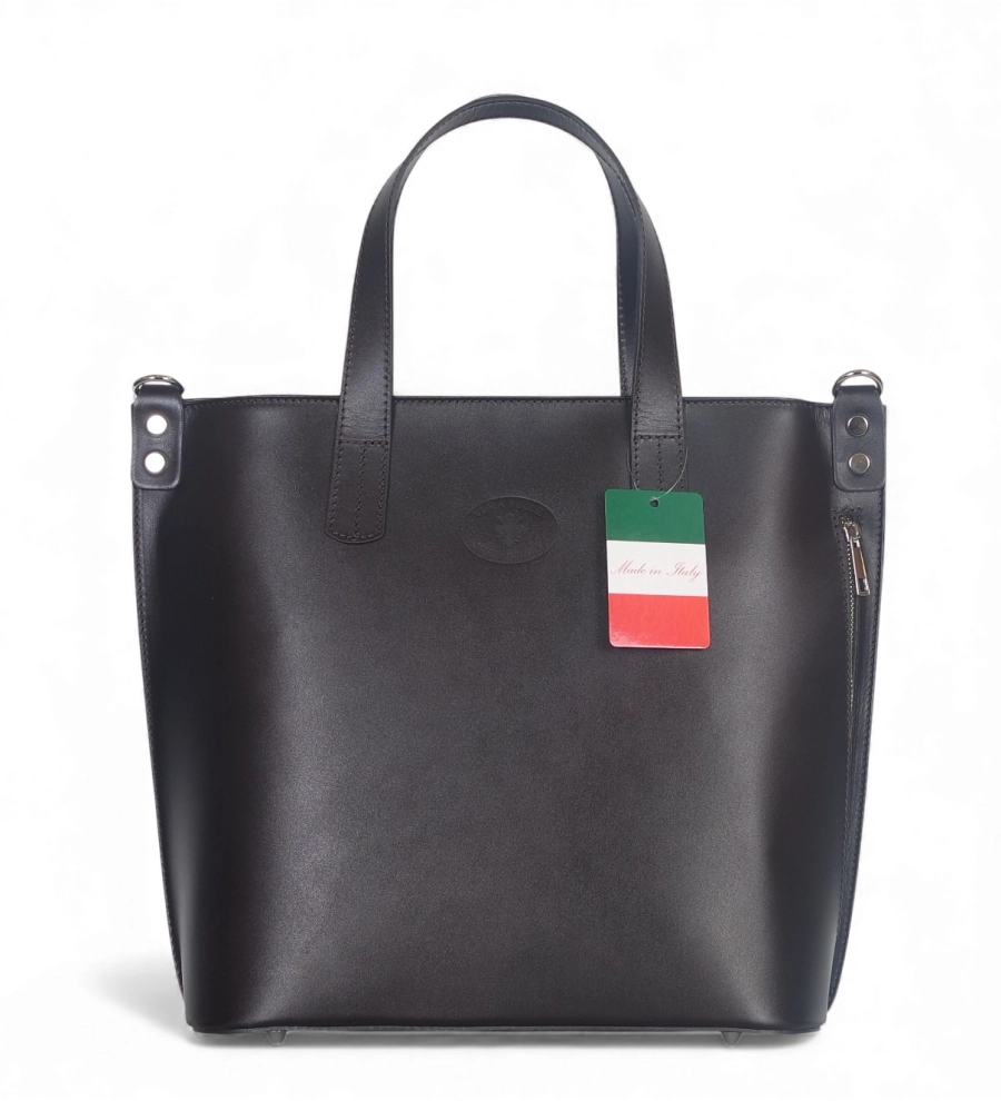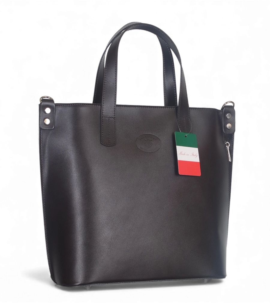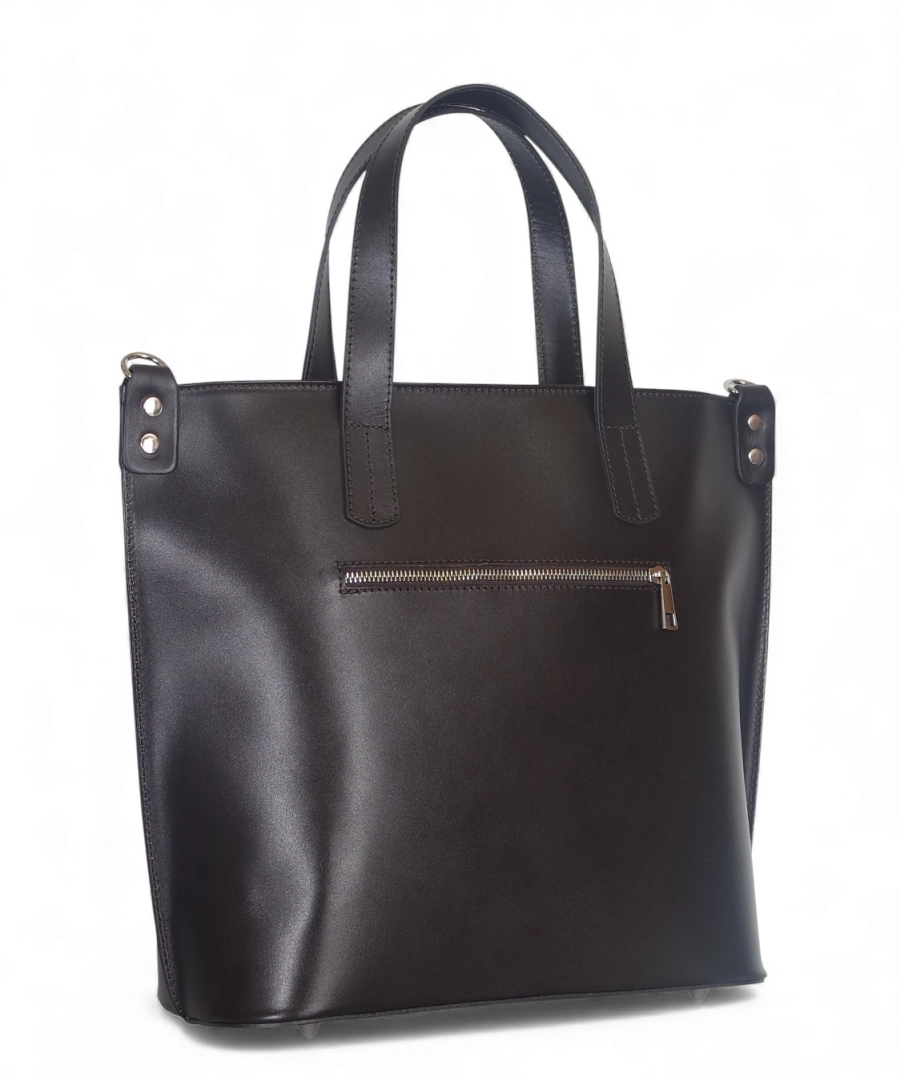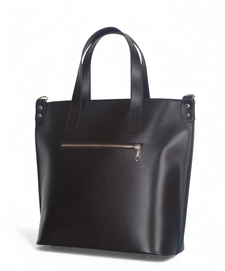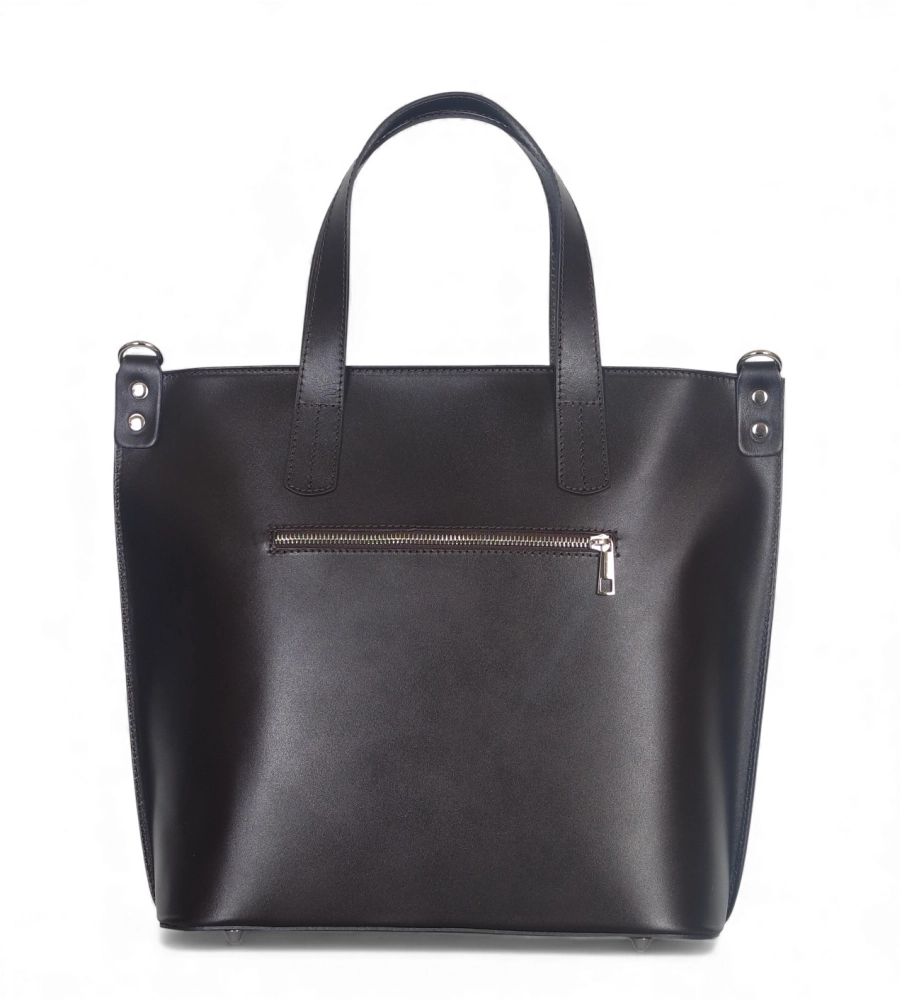 Klasyczna, elegancka skórzana torebka wykonana z najwyższej jakości licowej skóry naturalnej. Torebka jest sztywna, nie zmieni więc swojego kształtu pod wpływem zawartości. Delikatne logo na froncie dodaje torebce uroku.