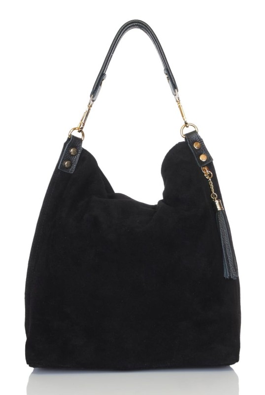 VERA PELLE Włoska czarna zamszowa torebka ZJ15