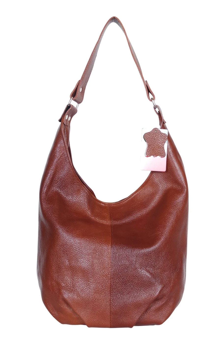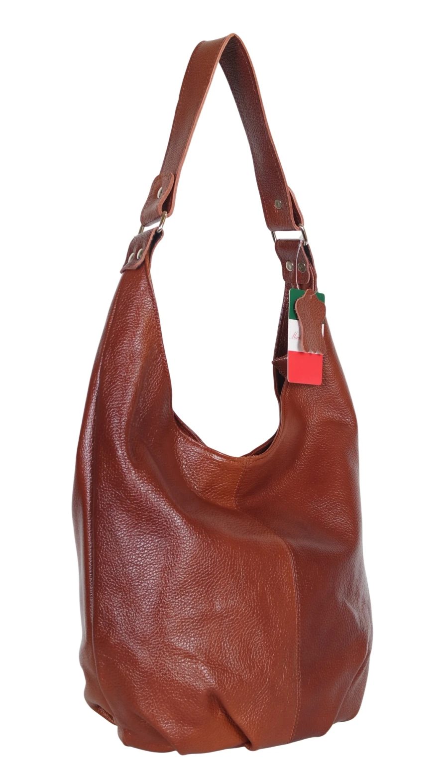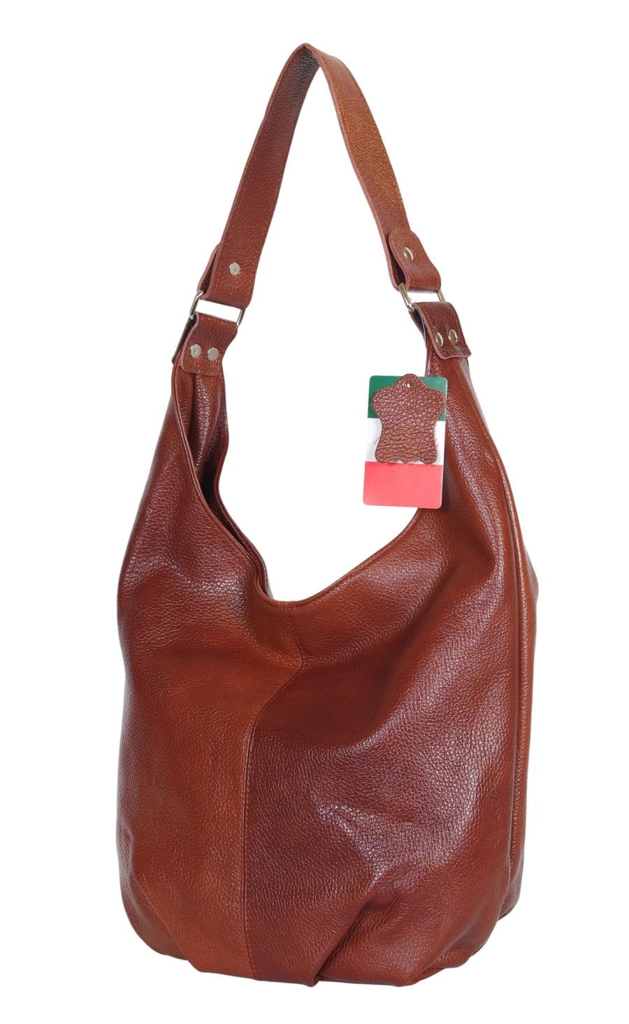 VERA PELLE Włoska skórzana brązowa torebka worek | Skóra Naturalna
