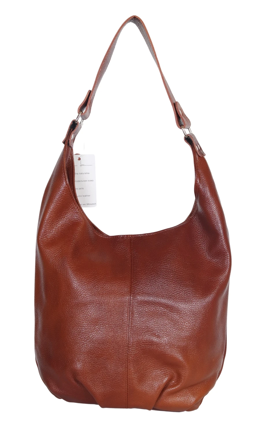 Oryginalna torebka wykonana z najwyższej jakości włoskiej skóry naturalnej Dollaro - bardzo wytrzymałej, a jednocześnie miękkiej, mięsistej i przyjemnej w dotyku. Prosty, klasyczny model. Pojemny i bardzo wygodny w codziennym użytkowaniu, mieści dokumenty formatu A4. Torebka wykończona jest mocną podszewką. Wnętrze jest jednokomorowe, z kieszonką na zamek oraz kieszonką na telefon. Długość rączki odpowiednia do wygodnego noszenia na ramieniu.