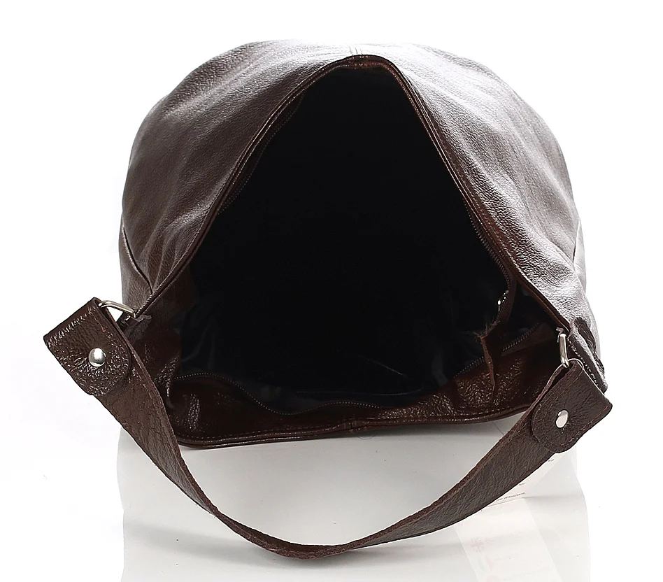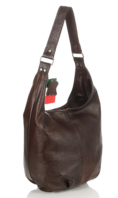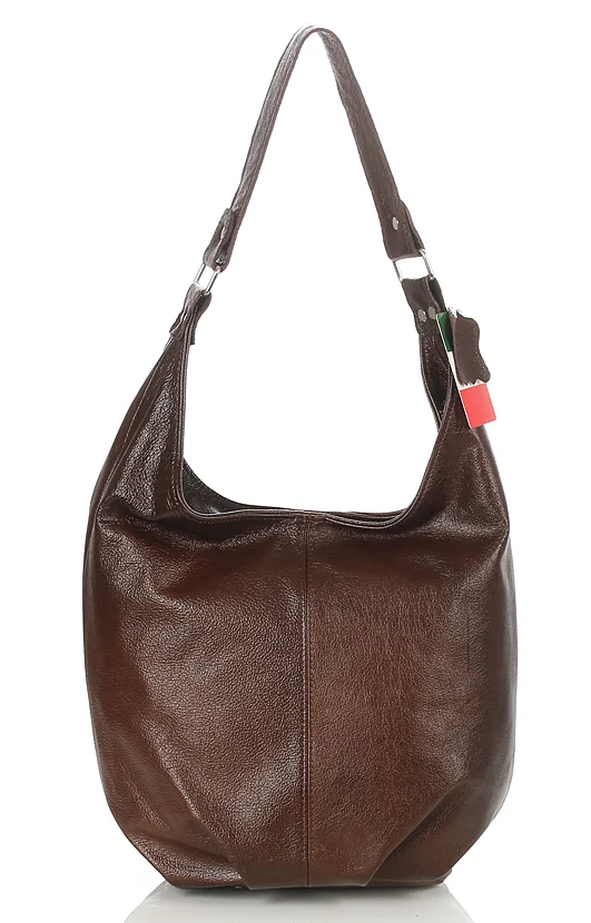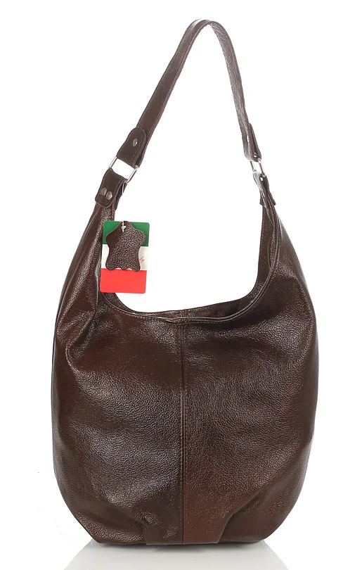 VERA PELLE Włoska skórzana brązowa torebka worek | Skóra Naturalna