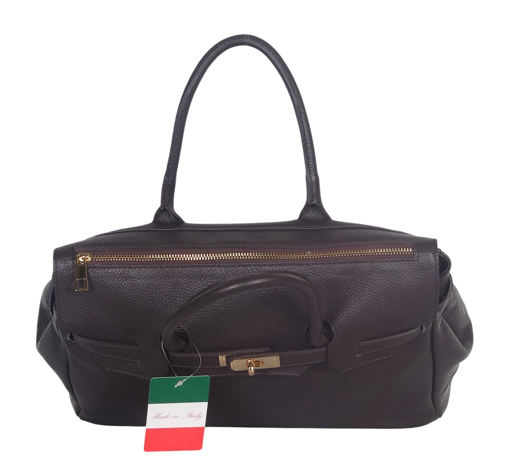 VERA PELLE Włoska skórzana torebka damska kuferek SKÓRA NATURALNA