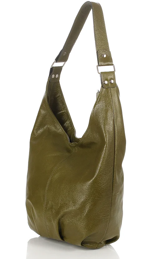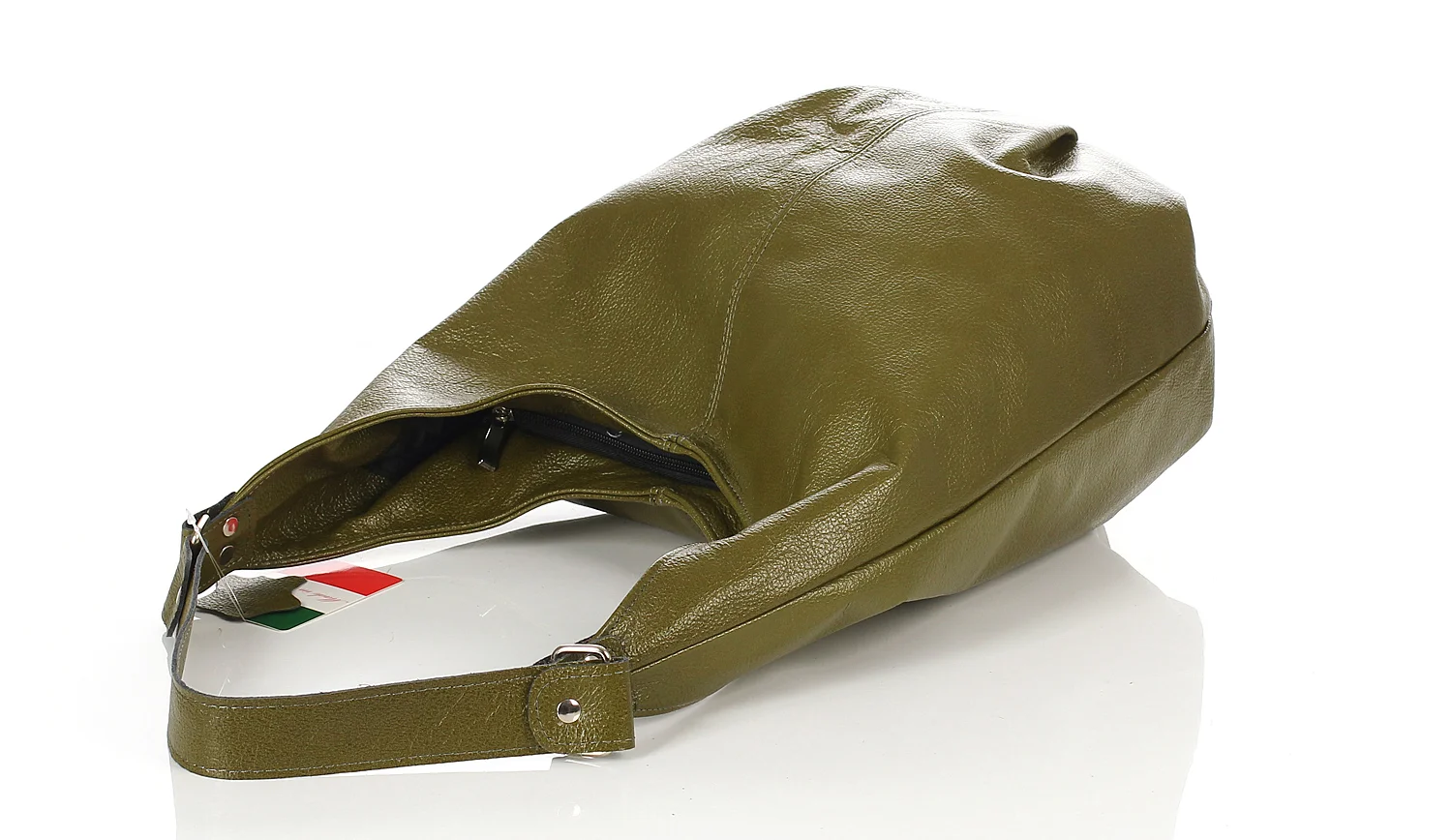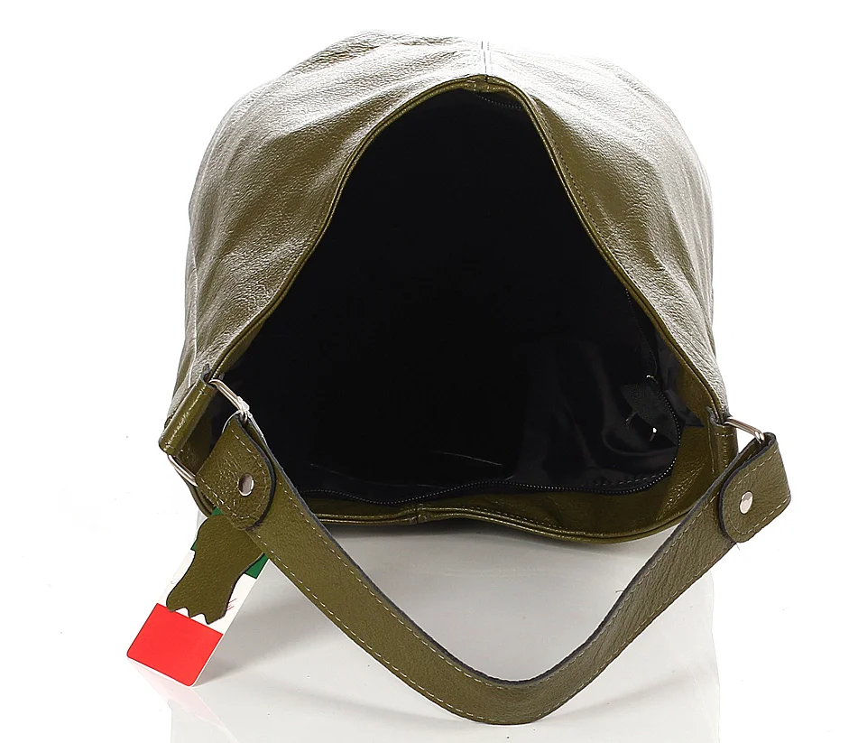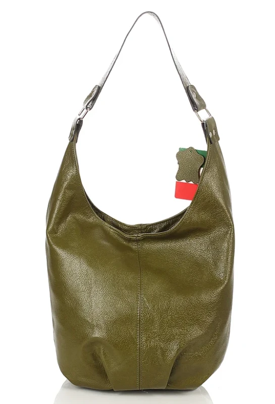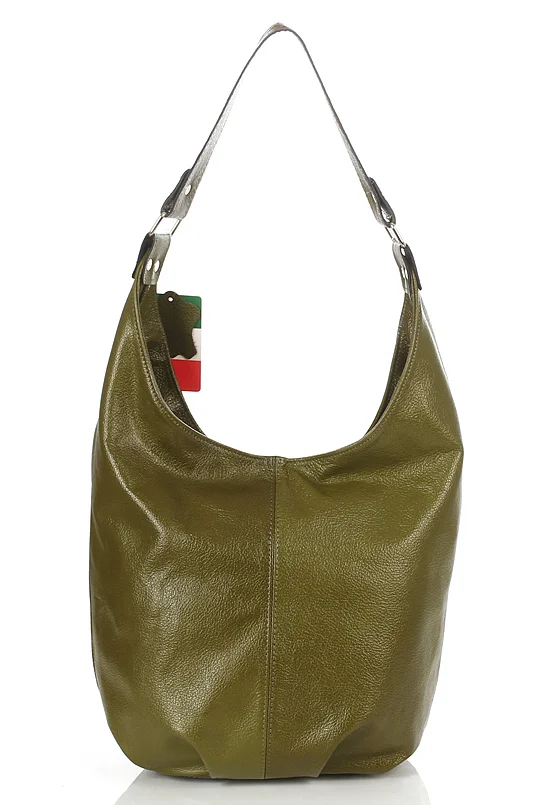 VERA PELLE Włoska skórzana zielona torebka worek | Skóra Naturalna