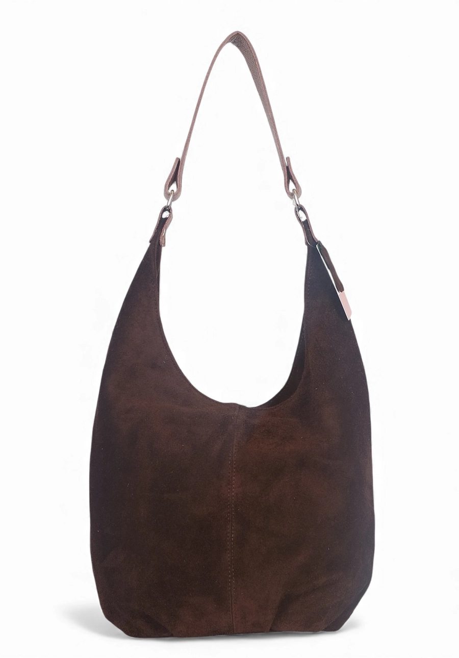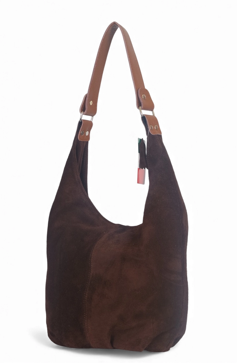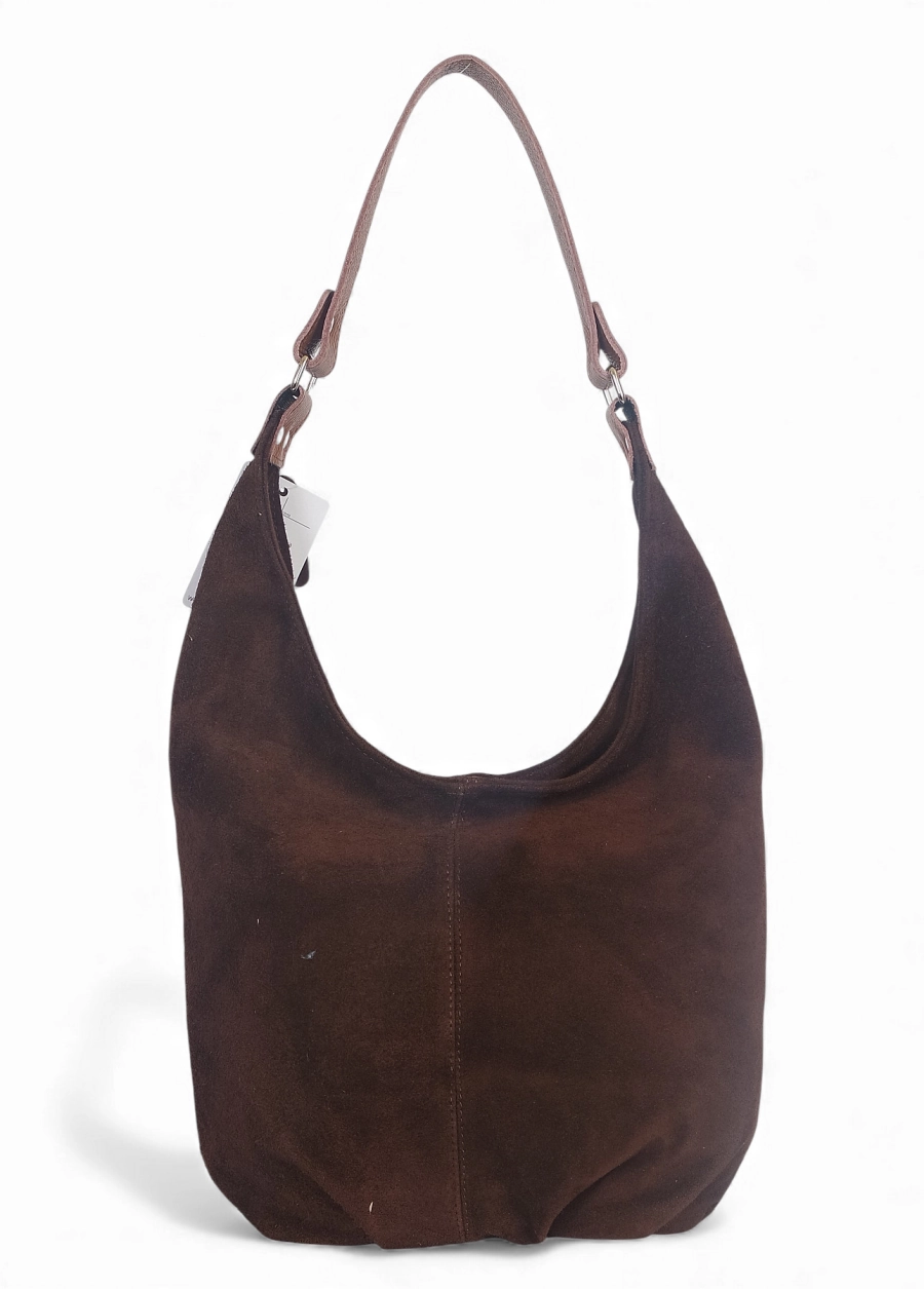 VERA PELLE Włoska zamszowa brązowa torebka worek Skóra naturalna