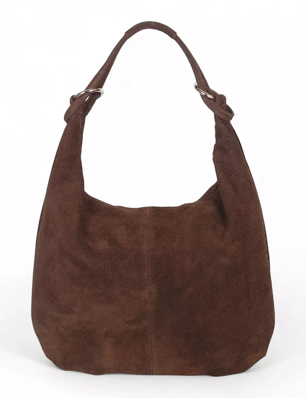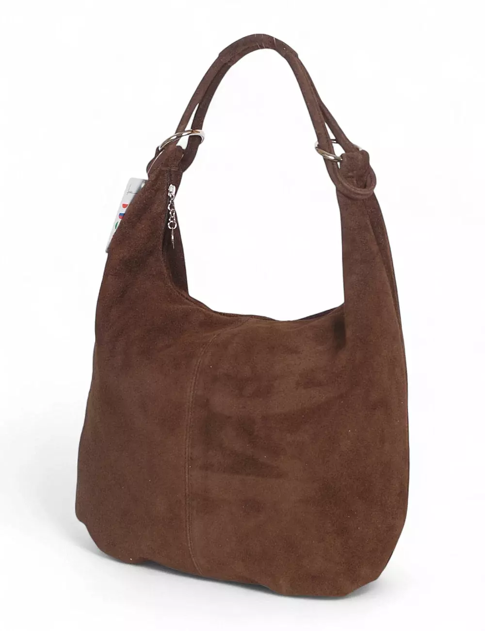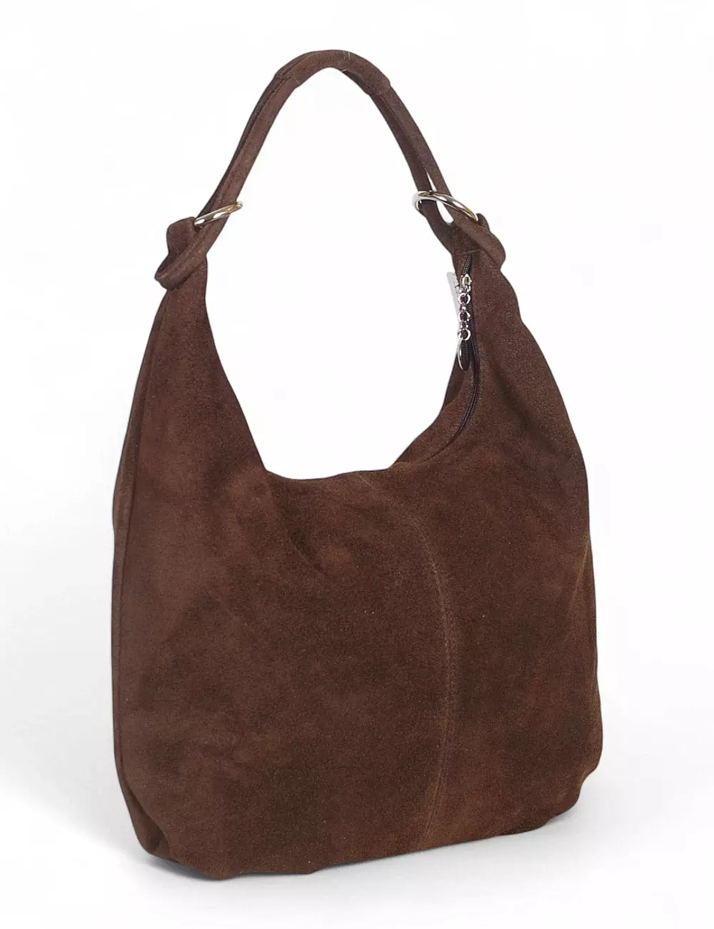 VERA PELLE Zamszowa czekoladowa torebka worek ZD4