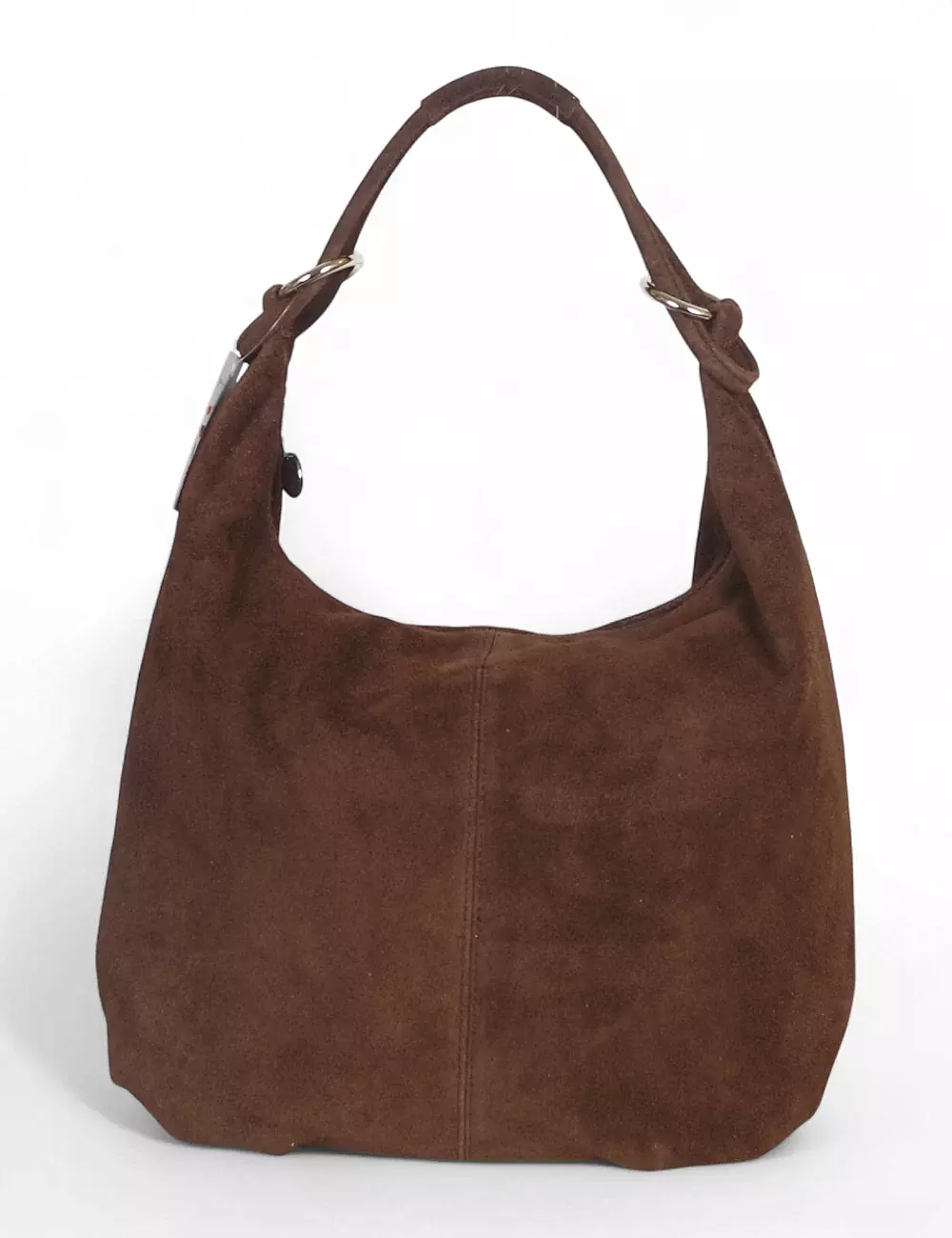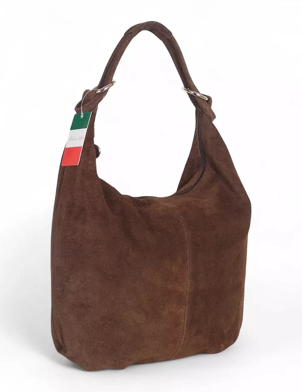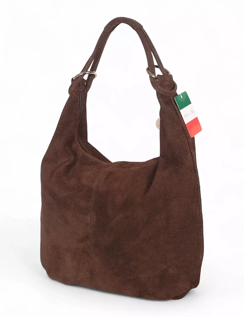 VERA PELLE Zamszowa czekoladowa torebka worek ZD4