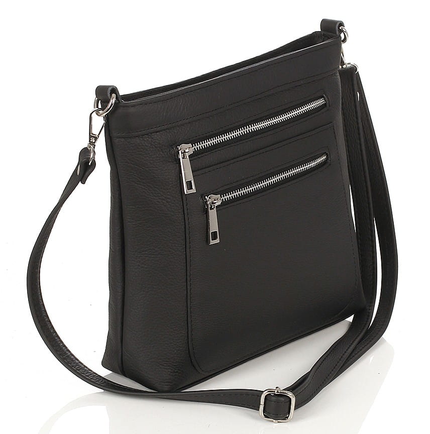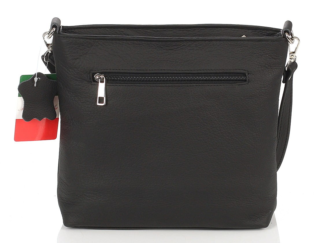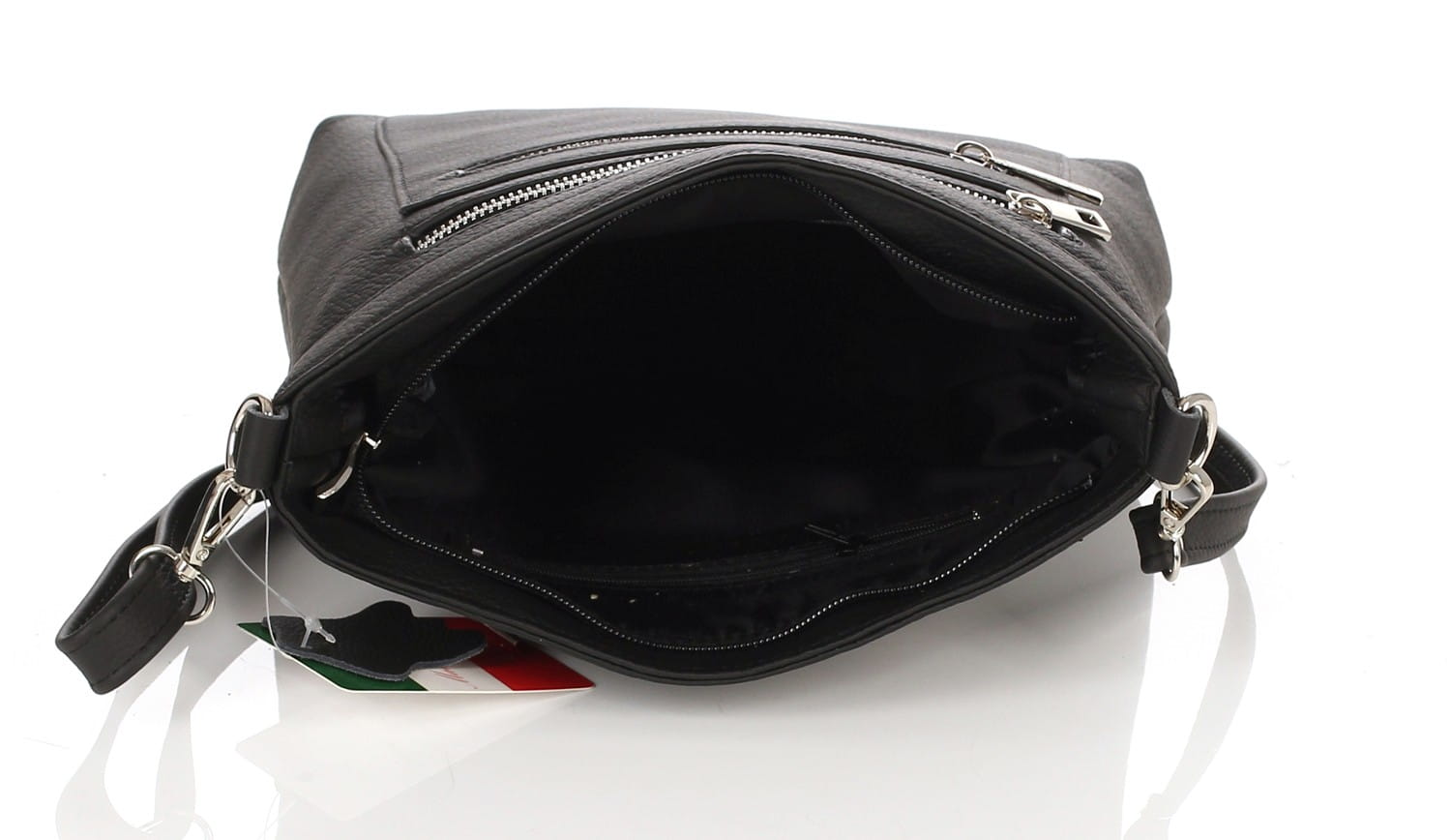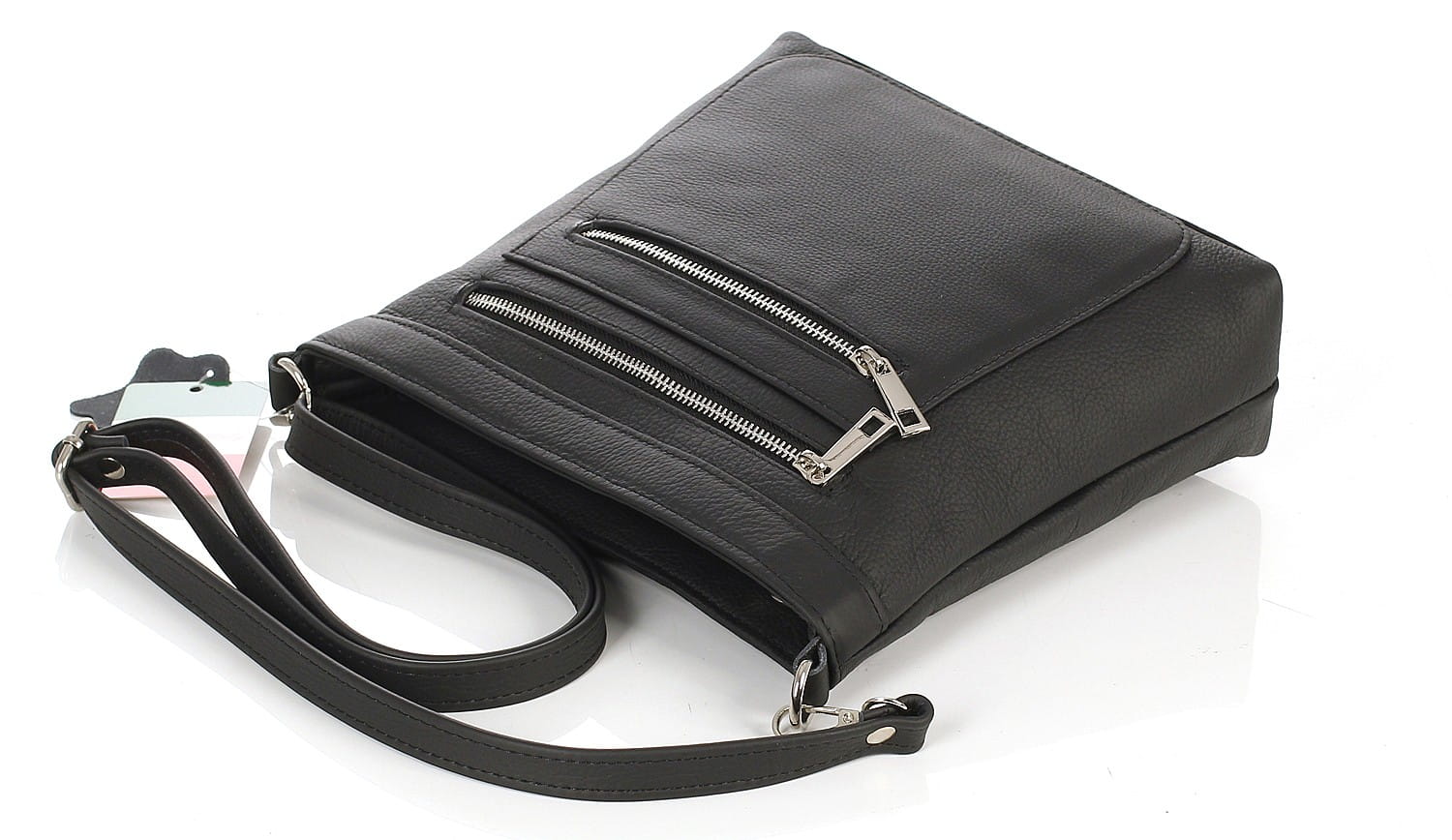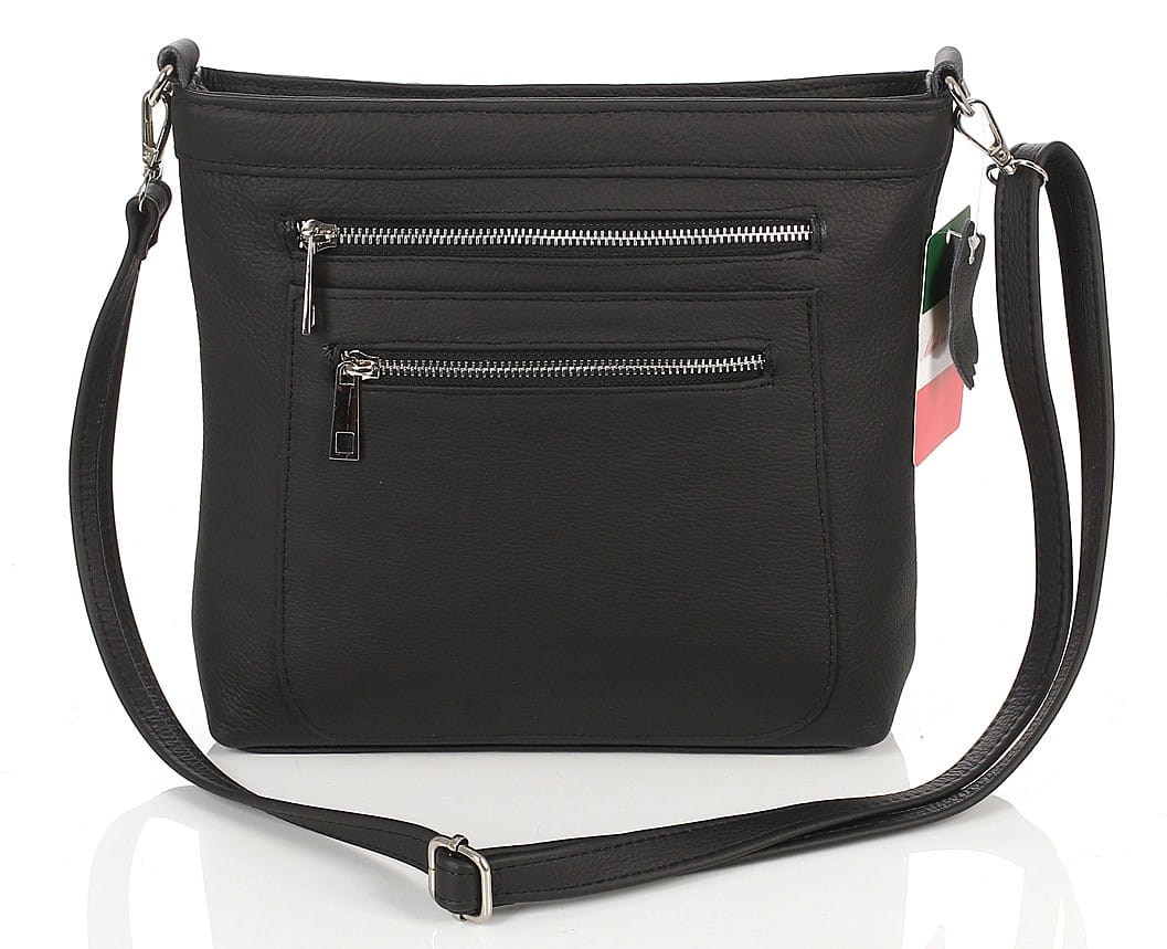 Vera Pelle Czarna skórzana torebka listonoszka z kieszonkami