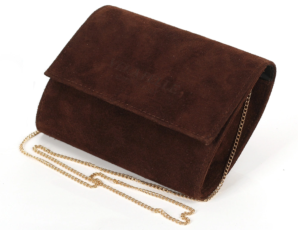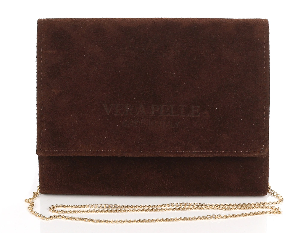 Vera Pelle Kopertówka na łańcuszku ZAMSZ NATURALNY Czekoladowa