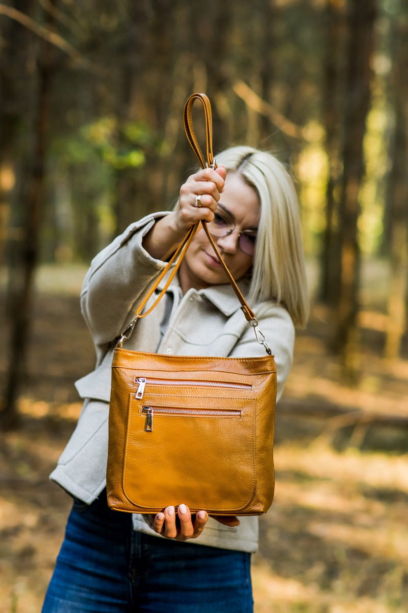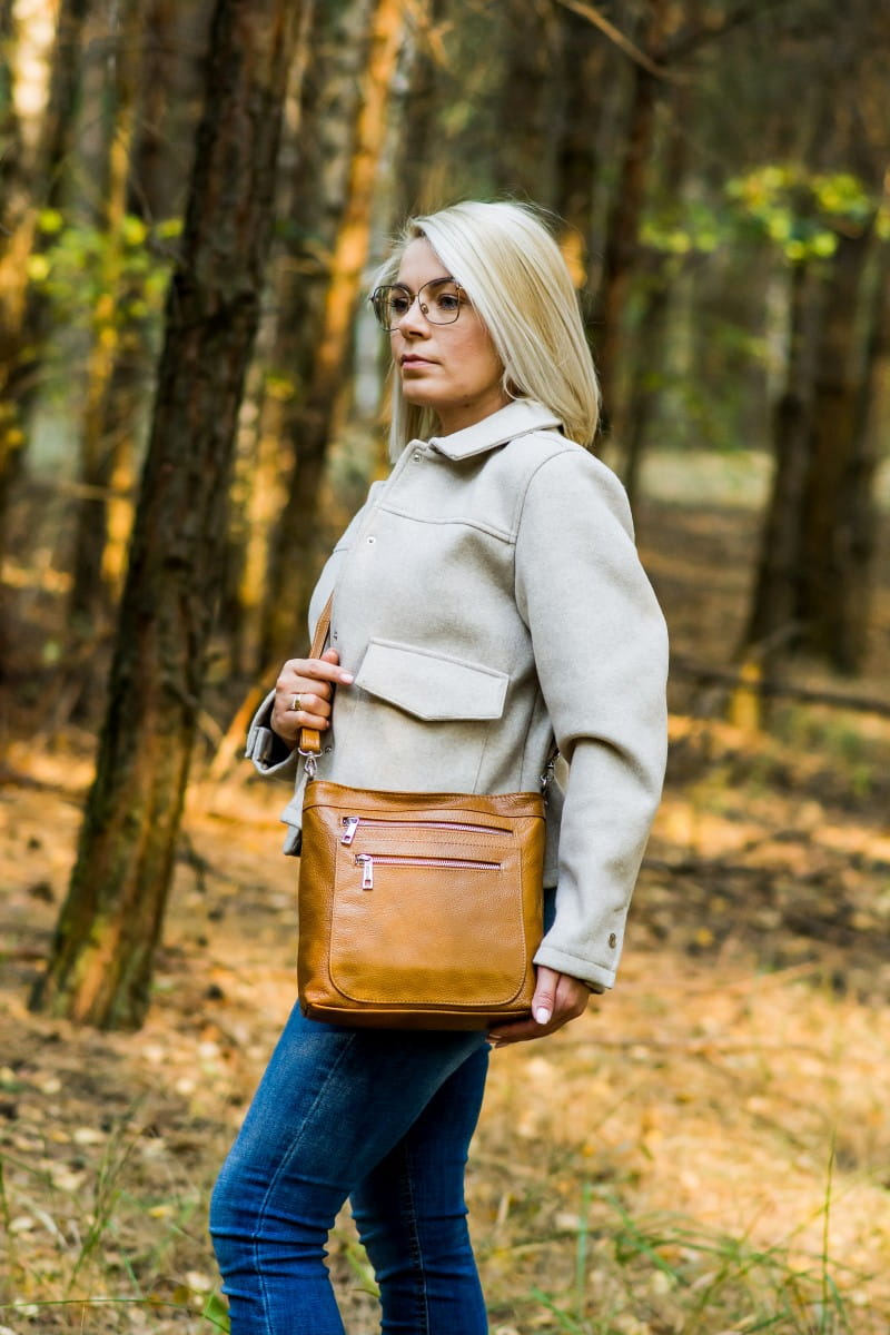 Vera Pelle Skórzana torebka listonoszka z kieszonkami