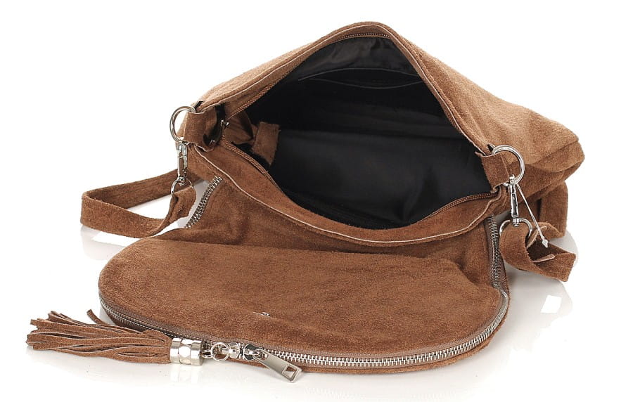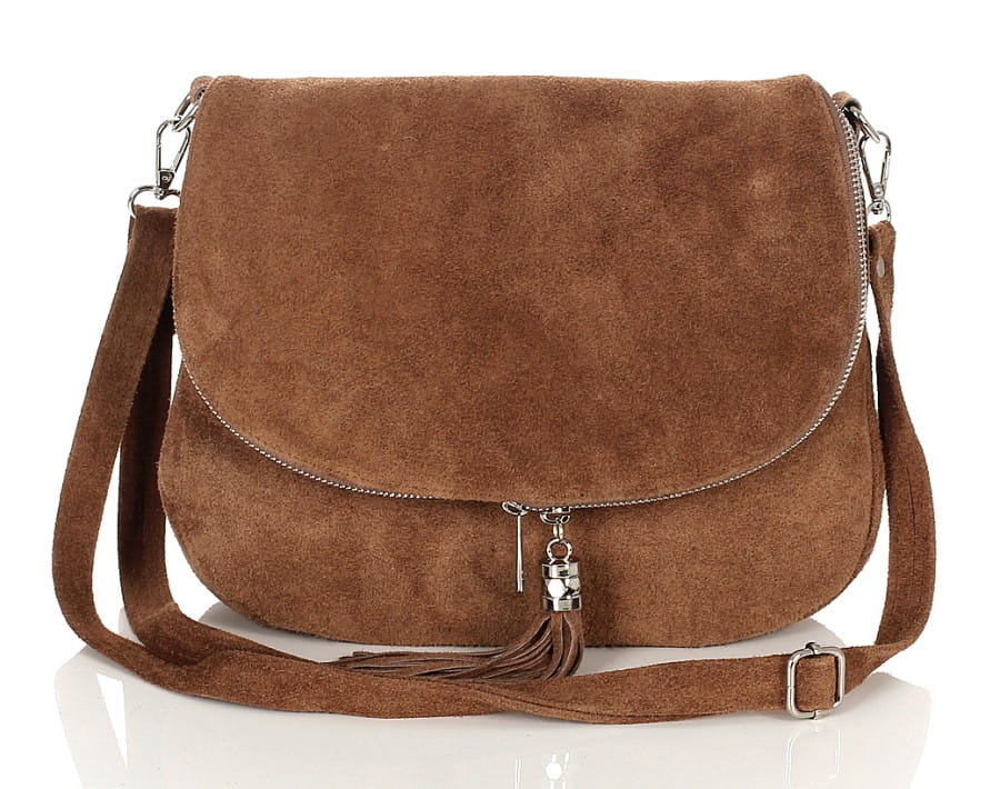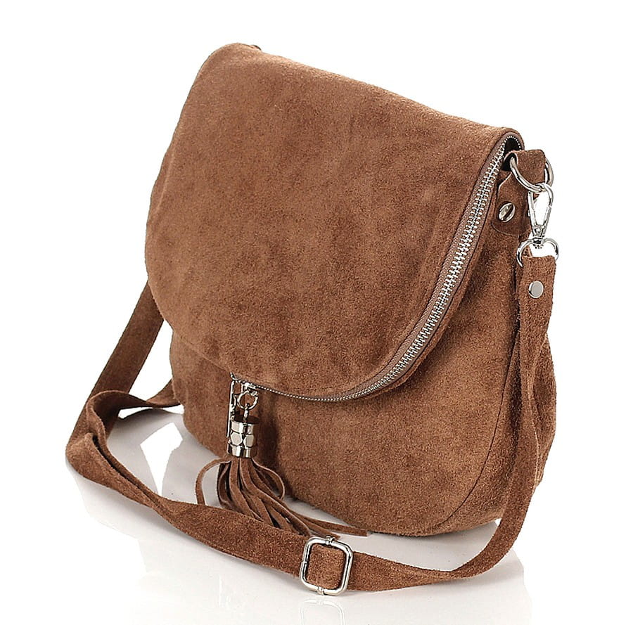 Vera Pelle Włoska zamszowa listonoszka z frędzlem